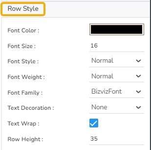 Font Color: This property allows users to change the color of the text within a row, enabling better visibility and alignment with design aesthetics.