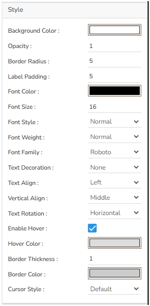 The user can write what they want to see in the label in the Text section.