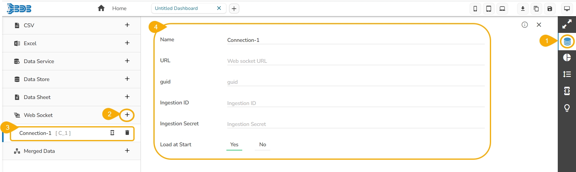 Click the Create New Connection icon provided next to the WebSocket connector.
