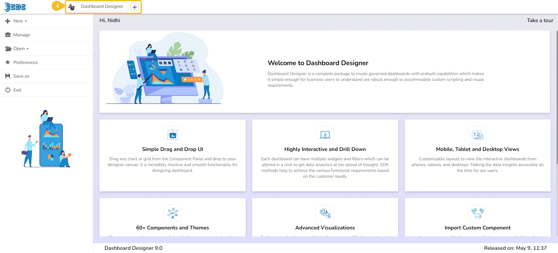 The Designer homepage opens.