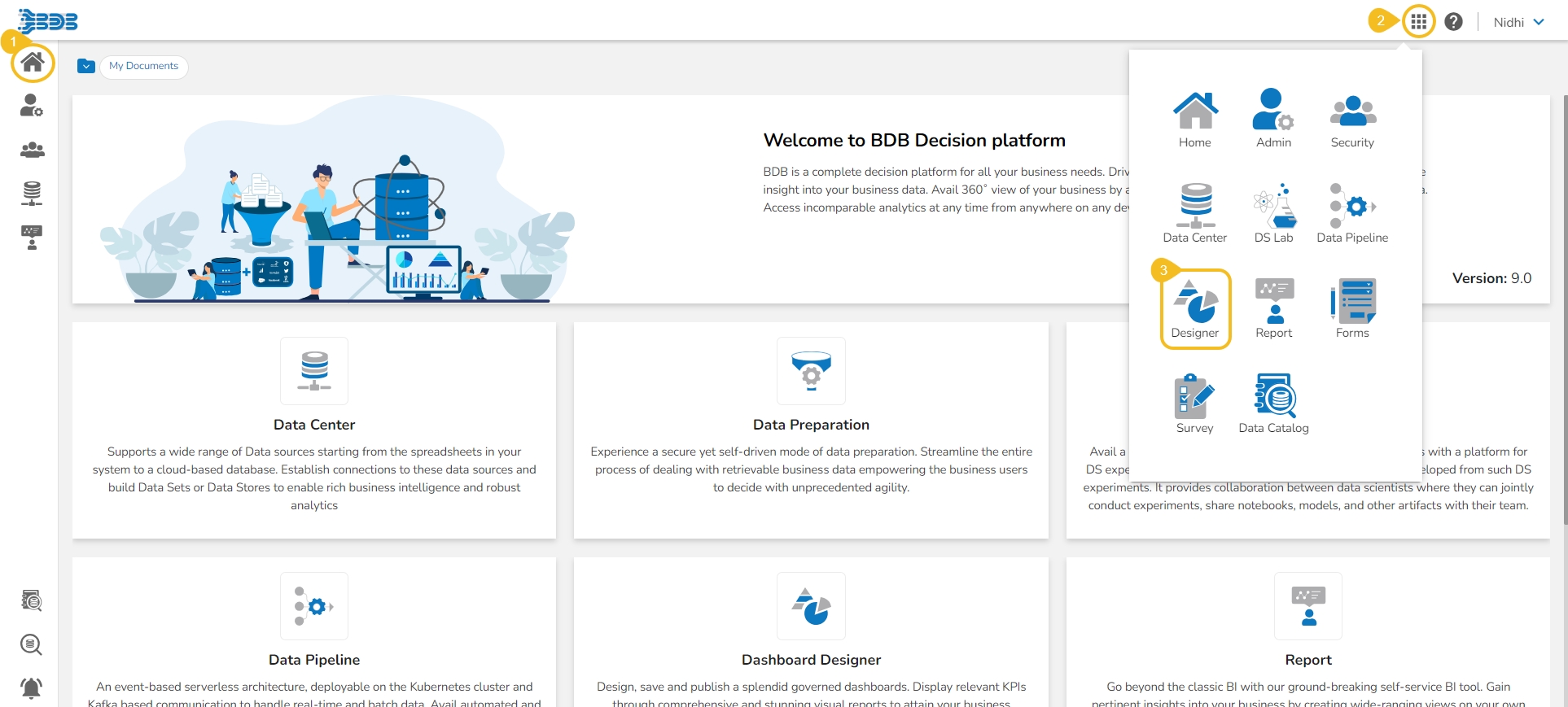 This section covers steps to access the Designer module from the Platform Apps menu.