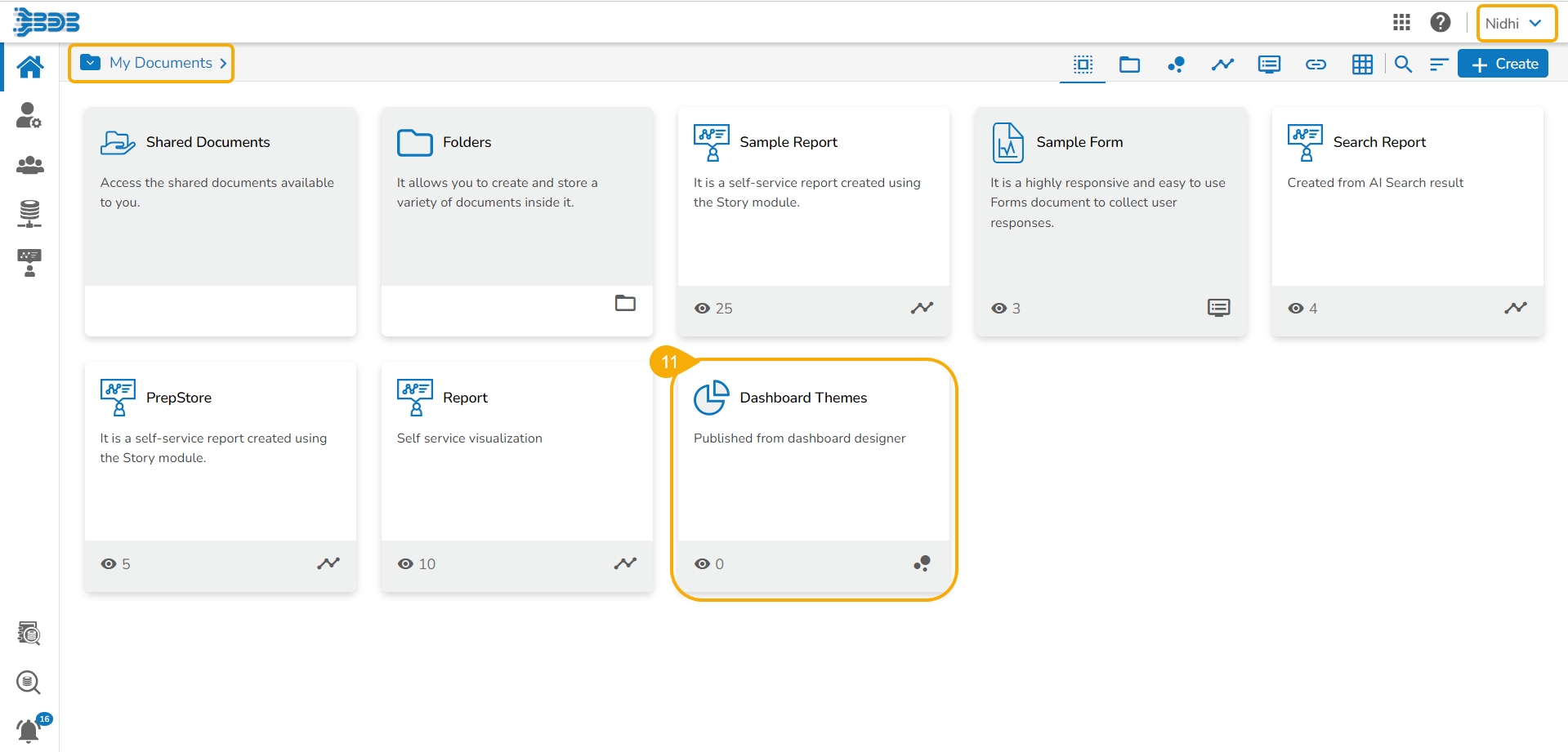 Select a Dashboard from the list of the saved dashboards under the selected workspace.