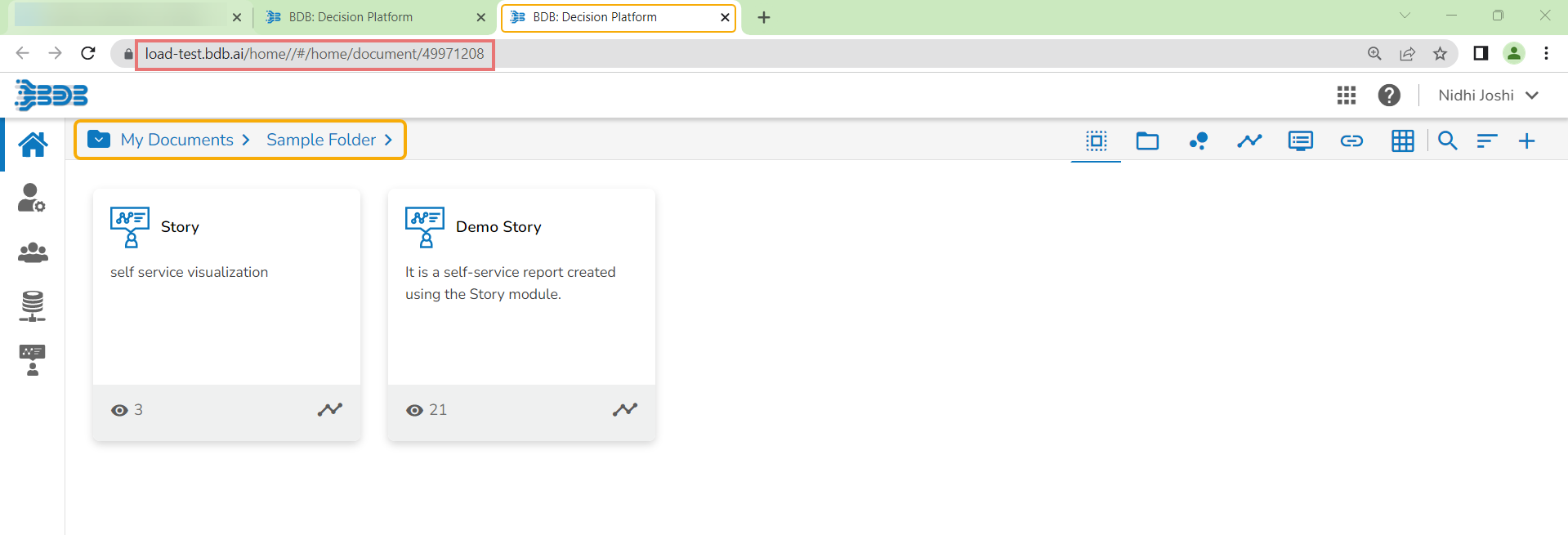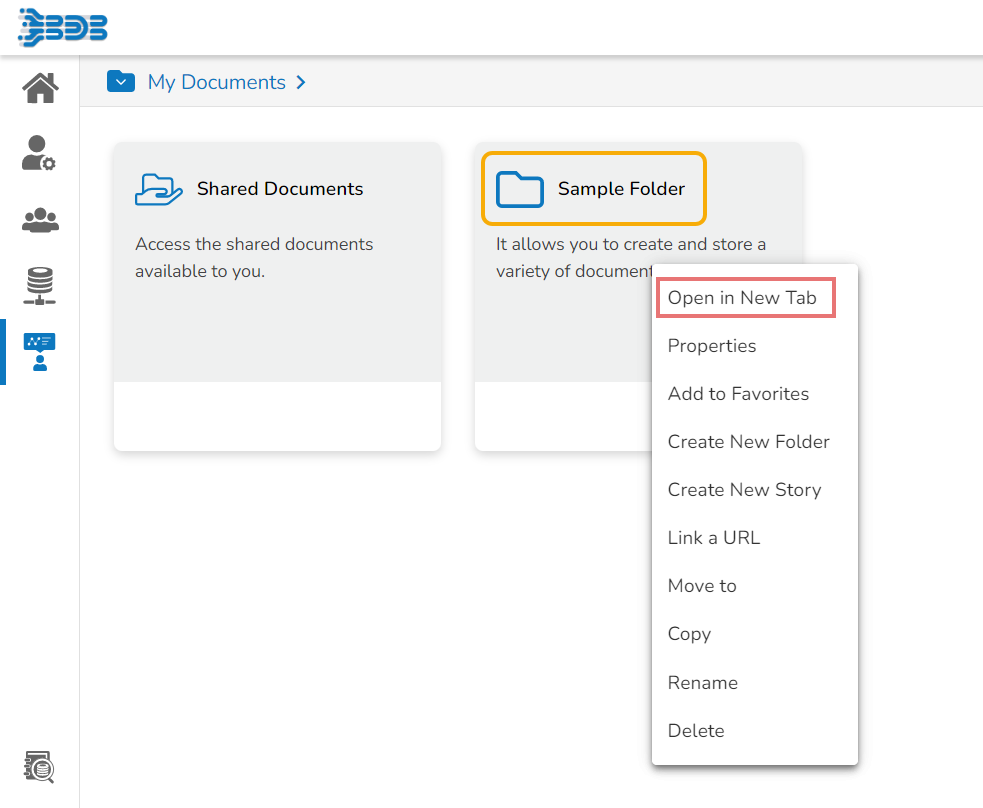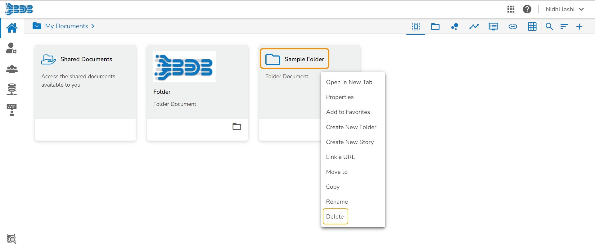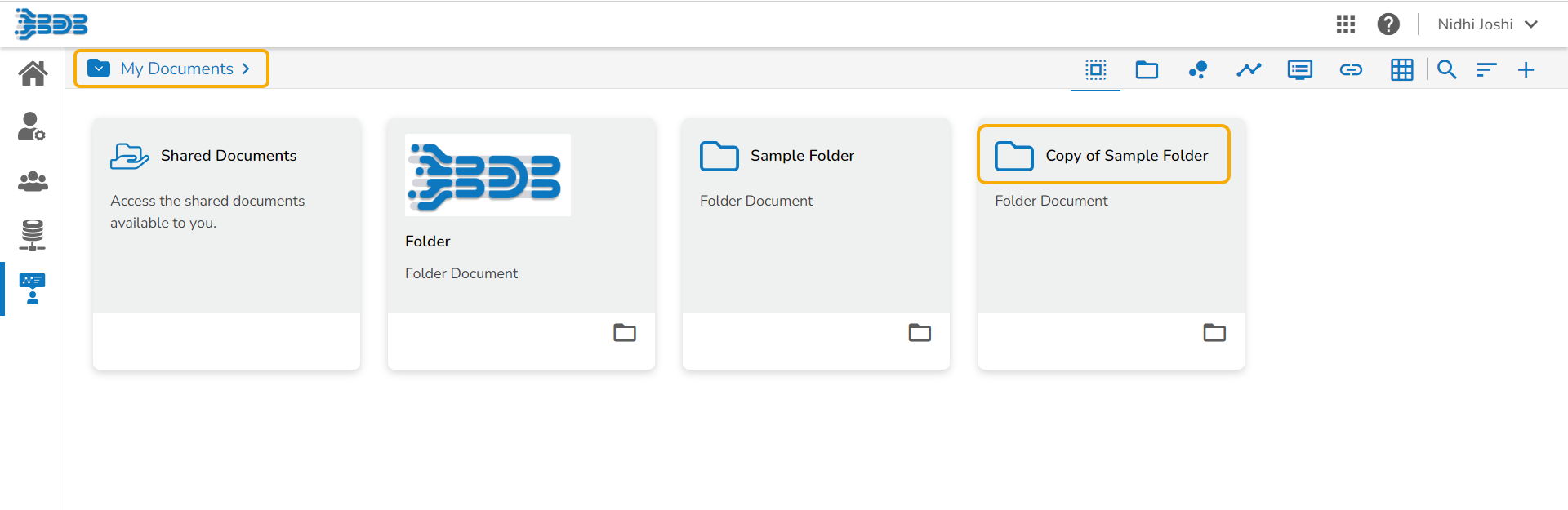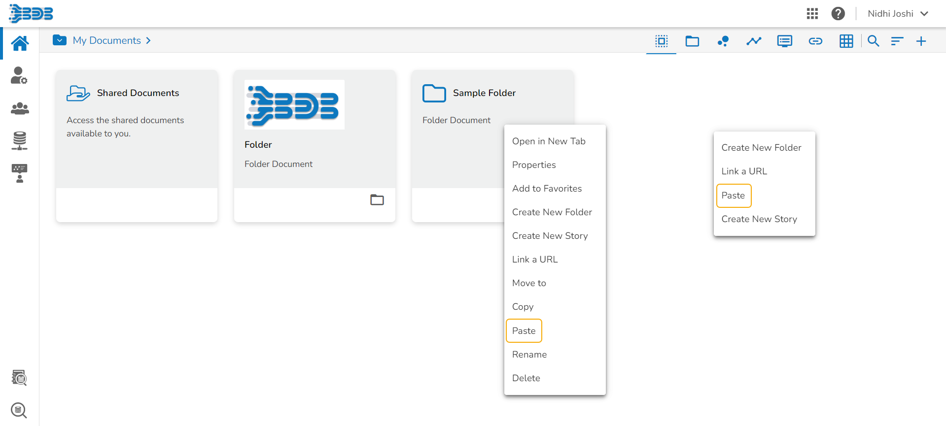 E.g., The following image shows that a folder Sample Folder from My Documents is named Copy of Sample Folder and has been pasted under the My Documents on the Platform Homepage.