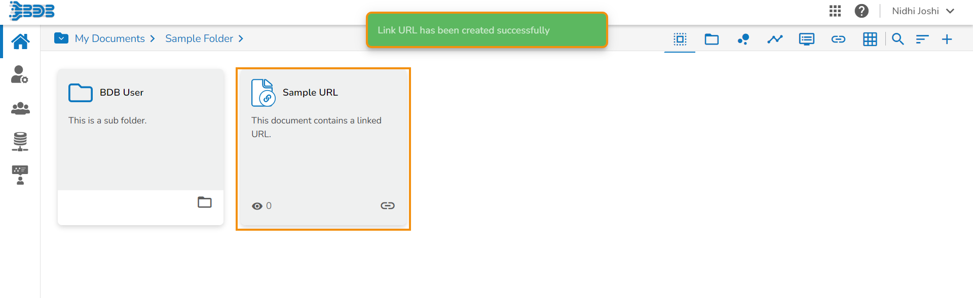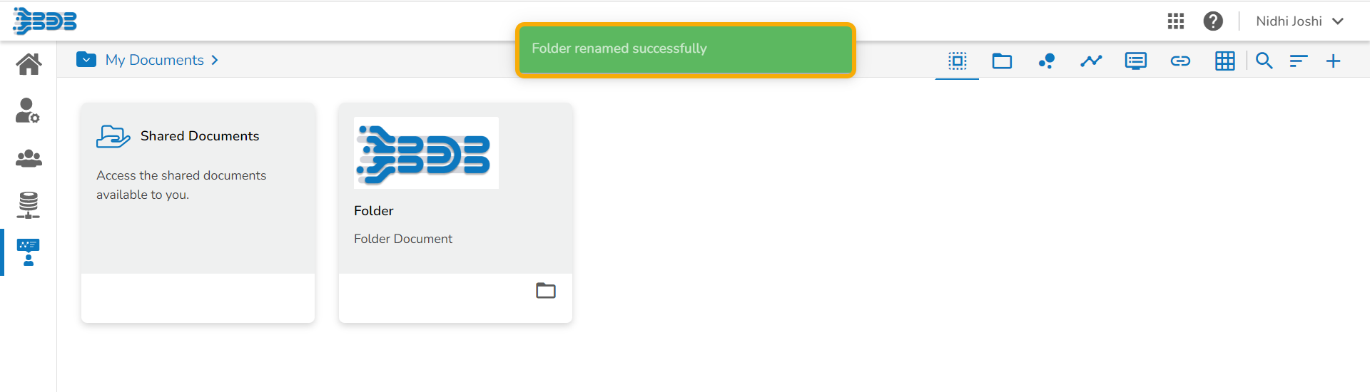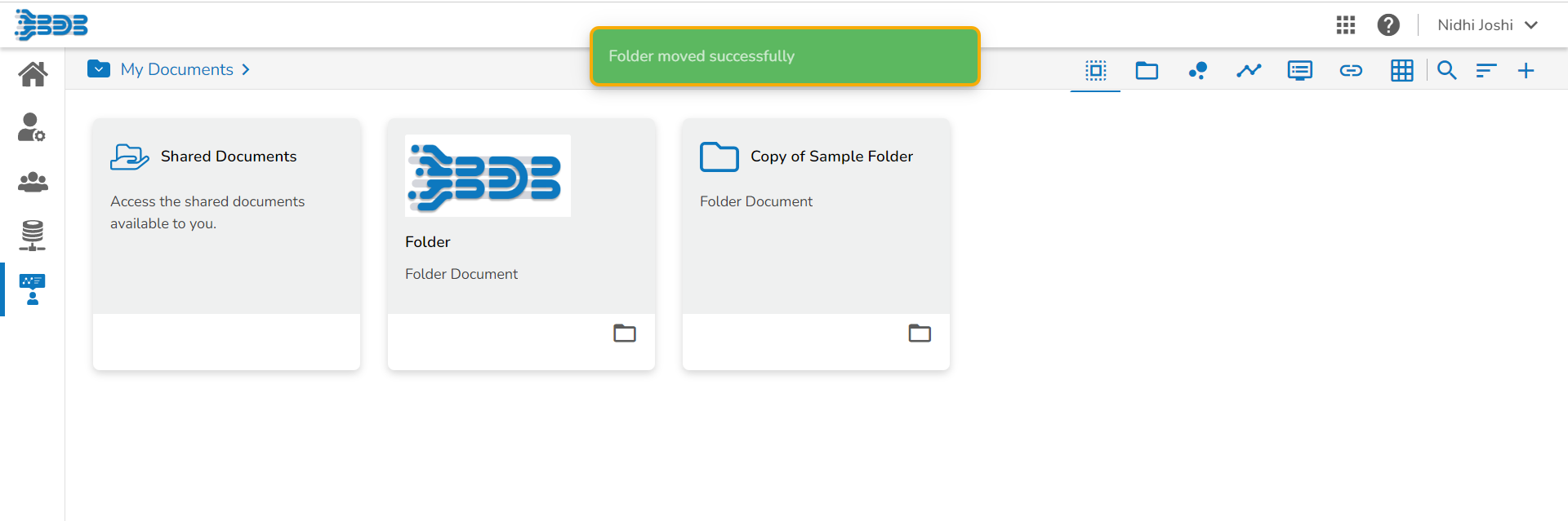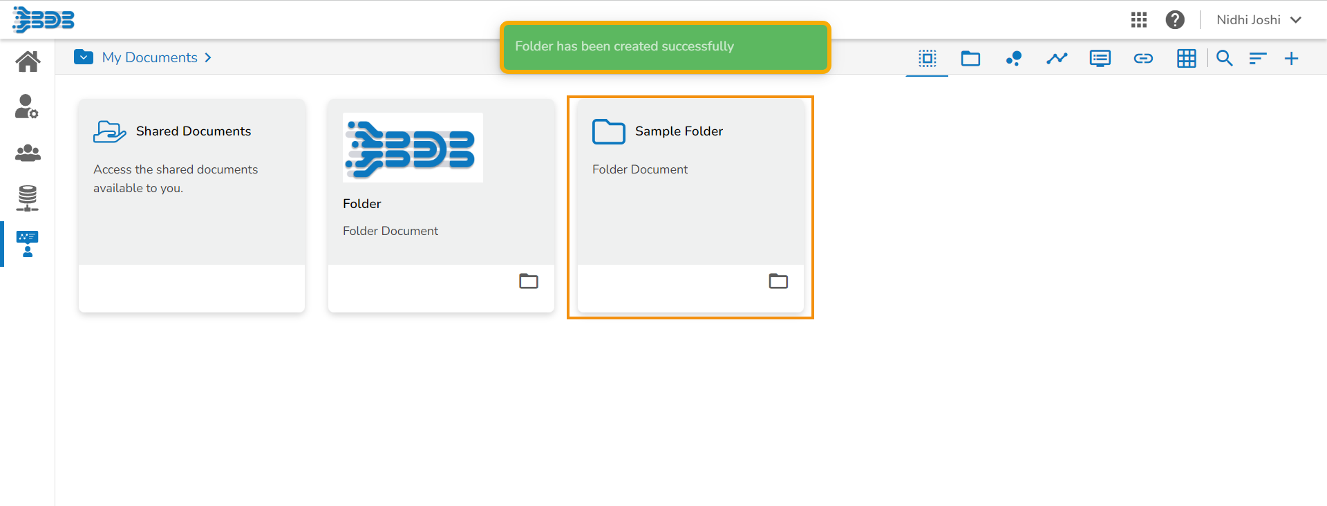 The newly created folder gets added to the selected document space.