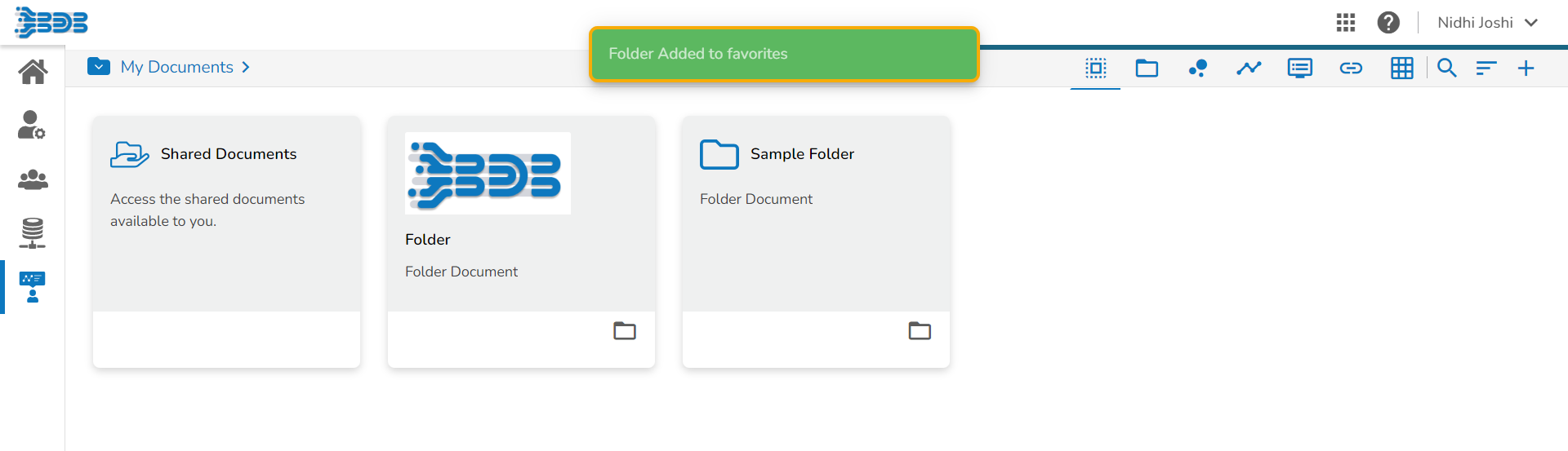 The selected folder gets added to the Favorites document space.