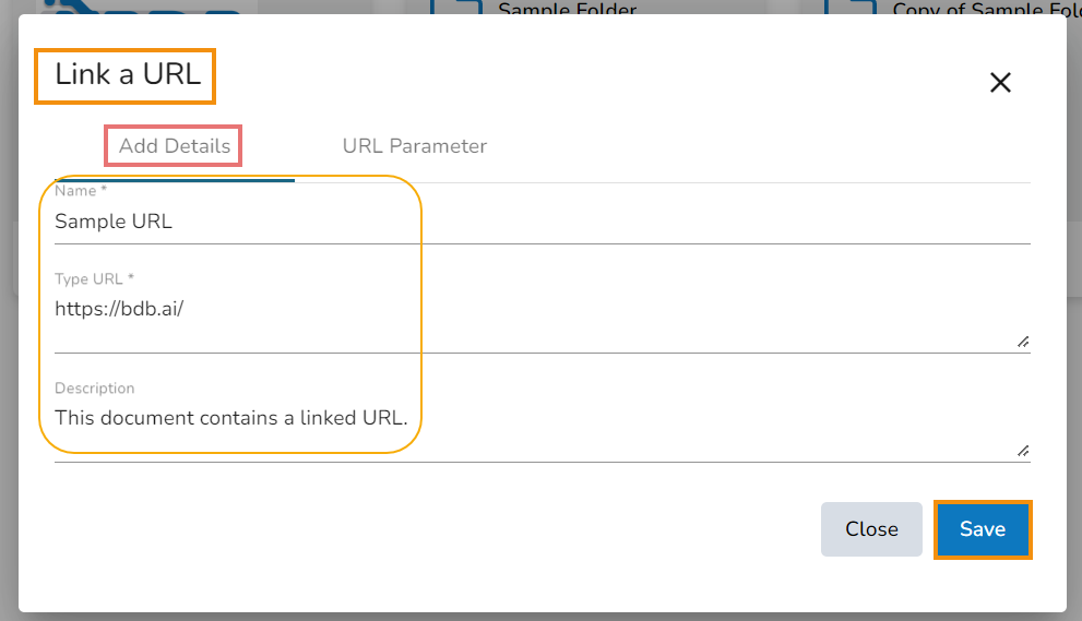 Navigate to the URL Parameter tab to add parameters (Optional).