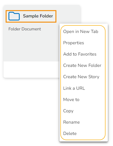 The user can a Story document created under the selected folder.