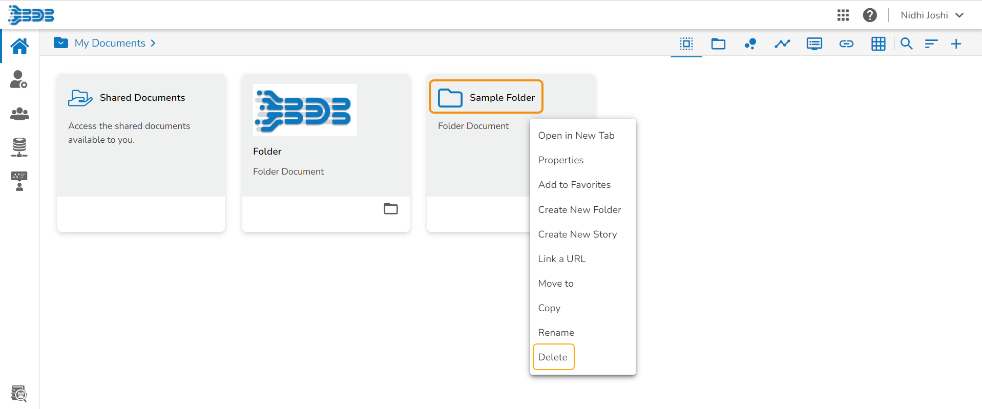 The Delete option is not available to the folders shared as the Public Documents.