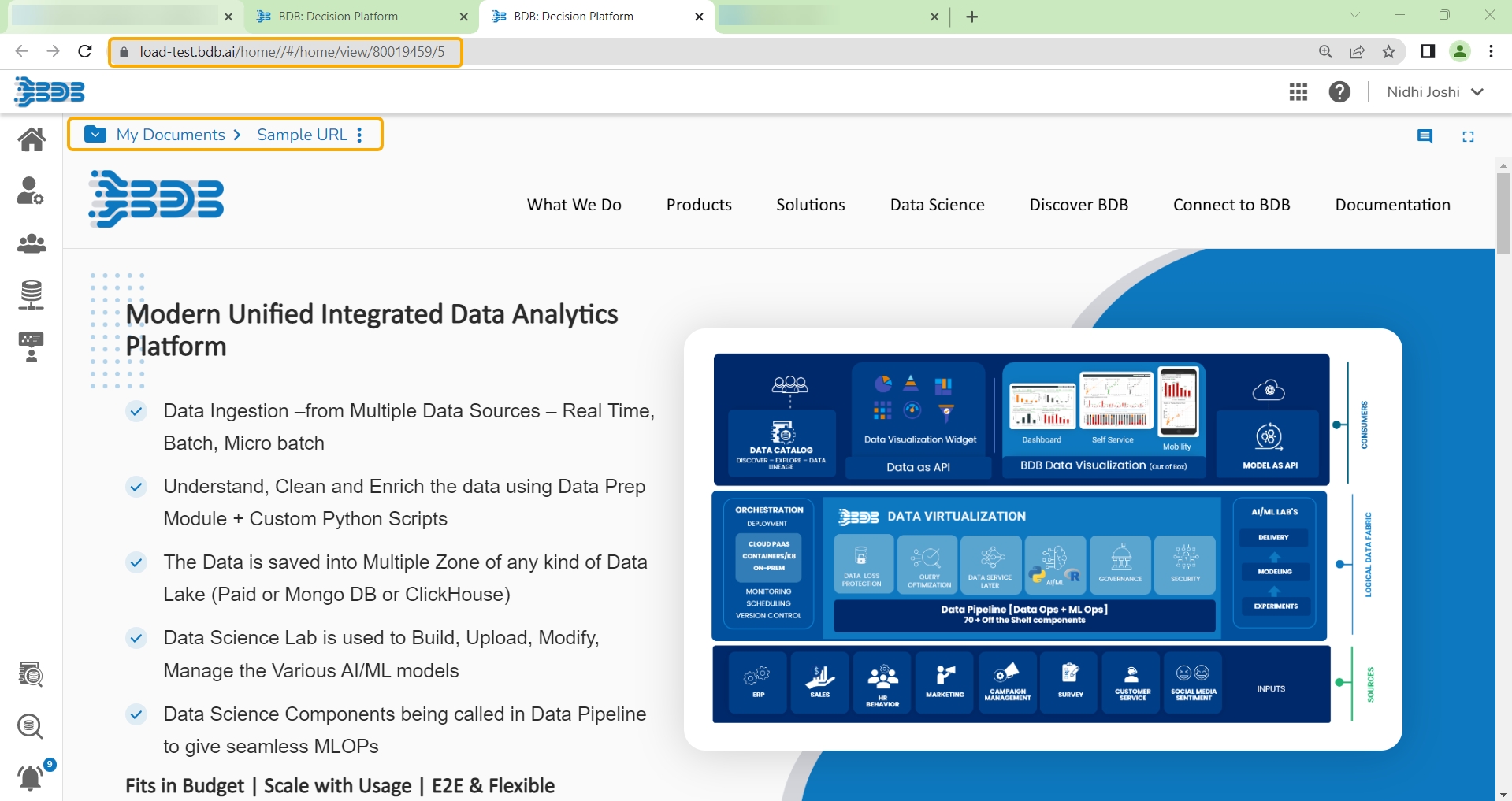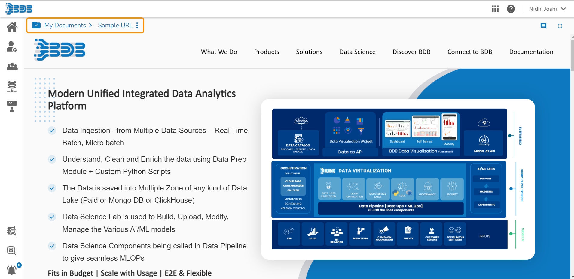 The user can connect to the URLs with the chosen folders or to the selected Document space.