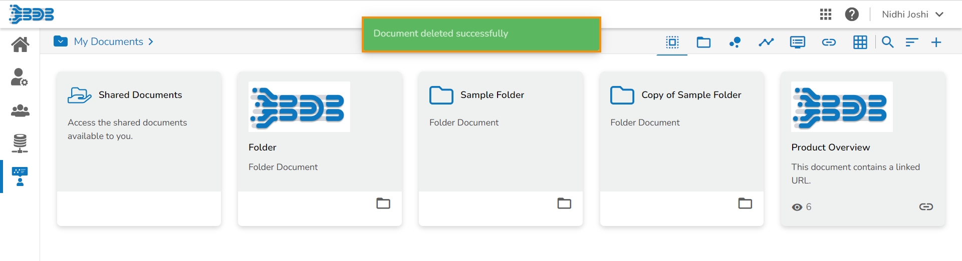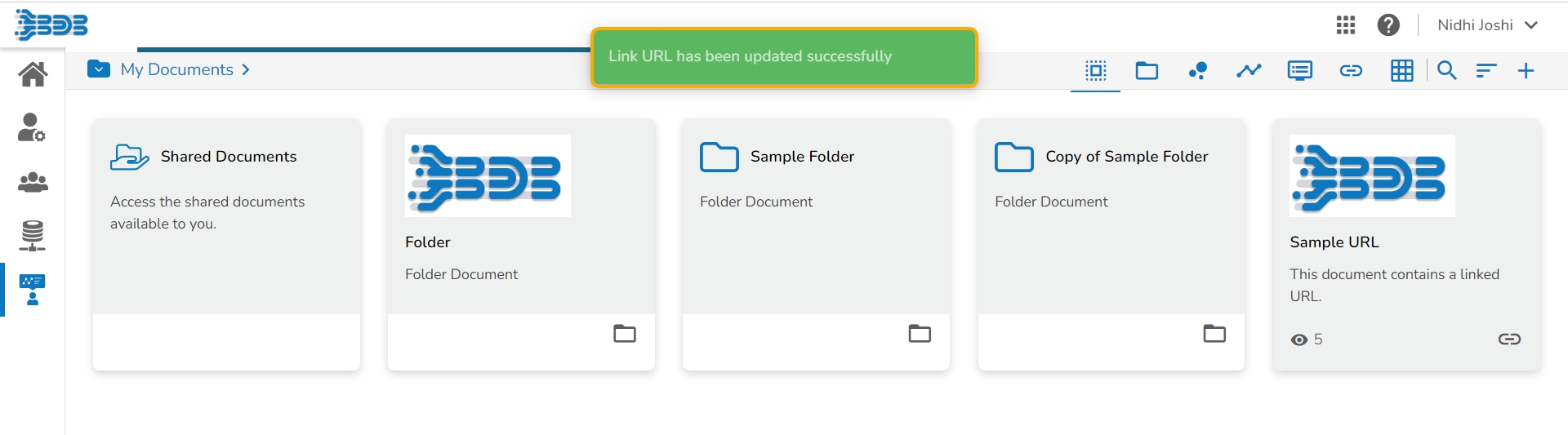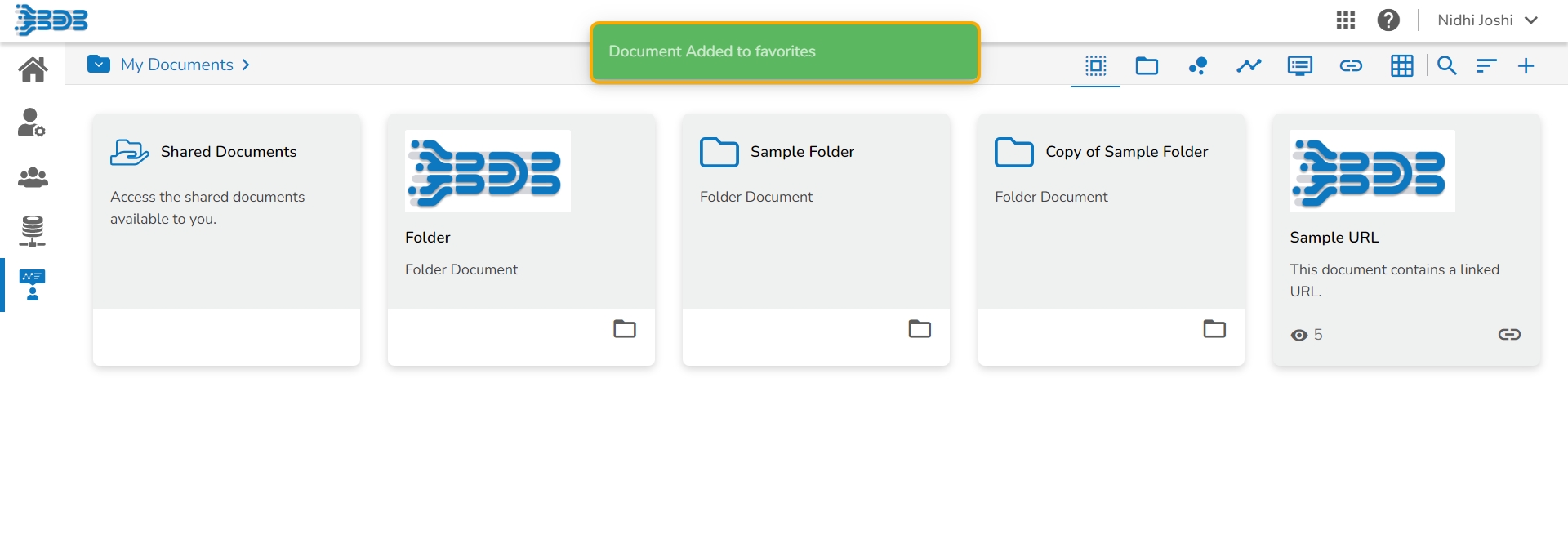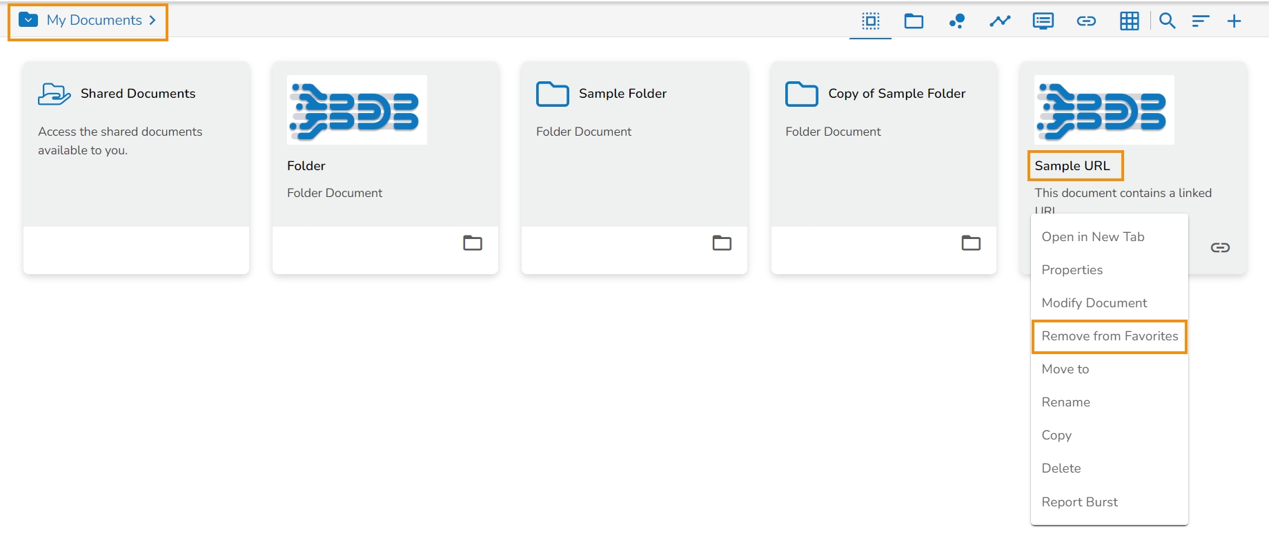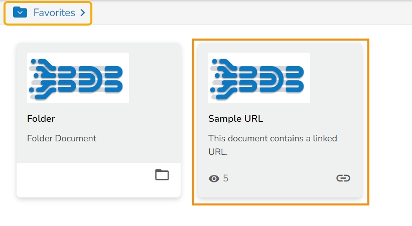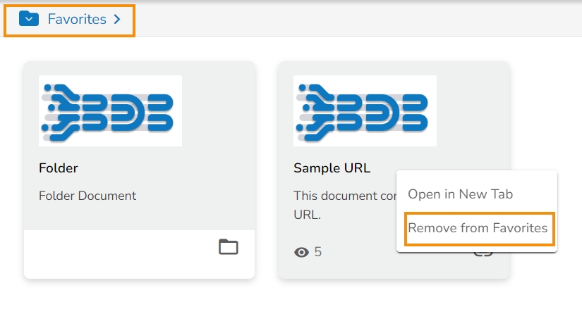 A message appears stating, “Document removed from Favorites” and the selected document with linked URL gets removed.