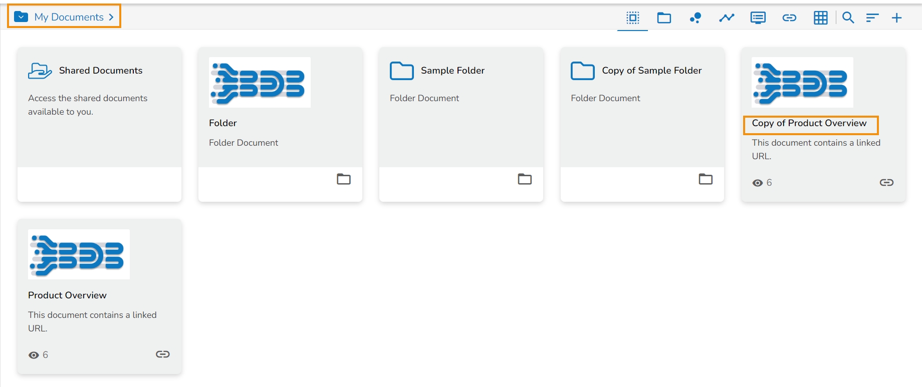 The Name mentioned in the pop-up window shows the prefix ‘Copy of-’ before the original name of the folder (E.g., Product Overview gets a new name Copy of Product Overview).