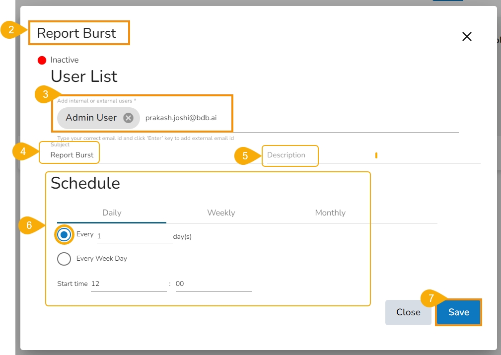 The open document link of the report gets shared with the selected user(s)/ user group(s).