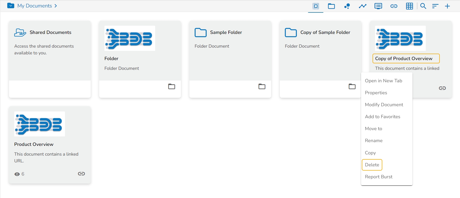A document with Linked URL is credited with various options in a context menu by using a right-click on it as displayed below: