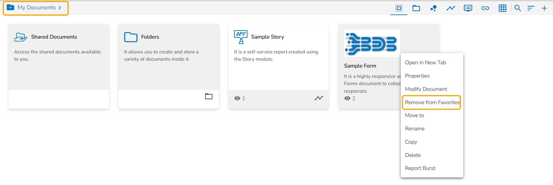 The Form gets removed from the Favorites, and a notification message appears stating the same.