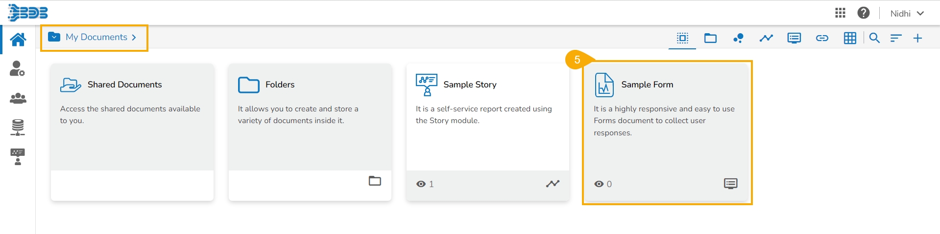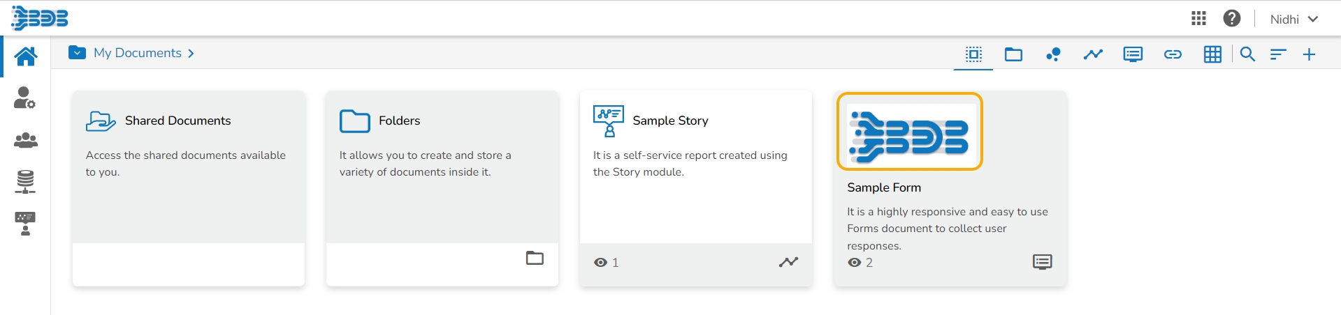 The users can publish the forms created by them to the BDB Platform. The published forms can be accessed on the BDB Platform homepage under the My Documents section.