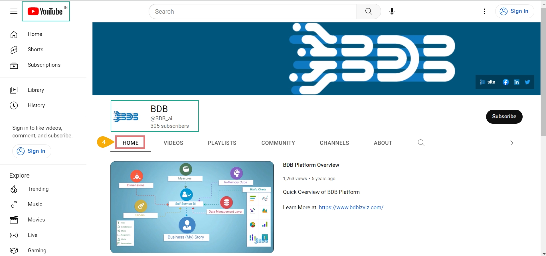 E.g., by selecting the Guided Learning option the user gets directed to the BDB YouTube page where you can see the latest videos.