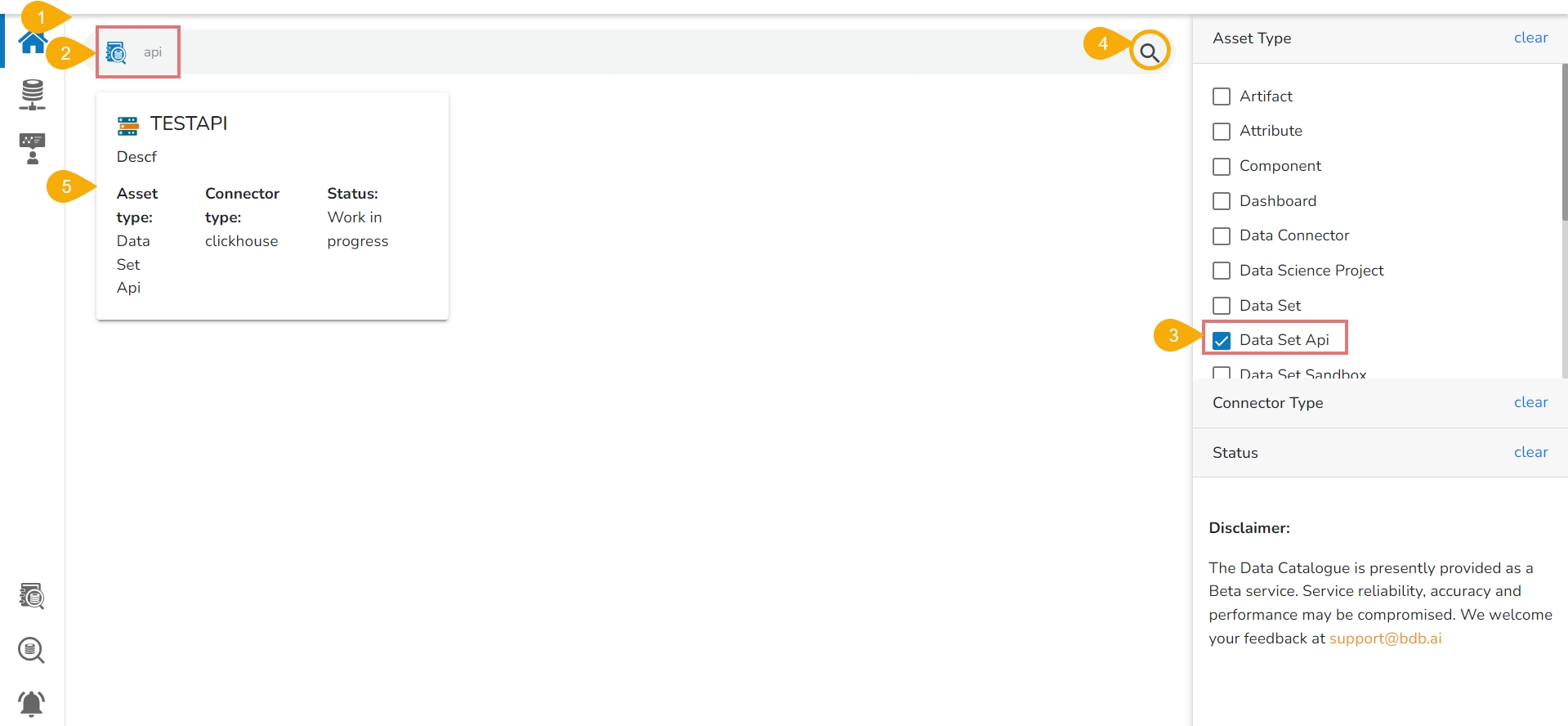 The Data Catalog/ A list of Data Catalog befitting the searched terms gets displayed.
