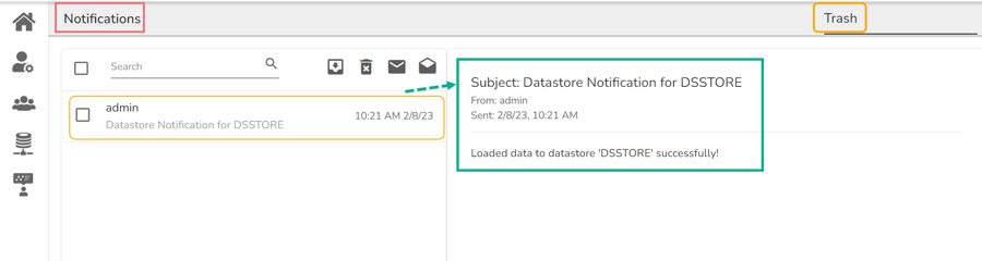 The notifications under the Trash folder get displayed (the latest notification opens in details (by default).