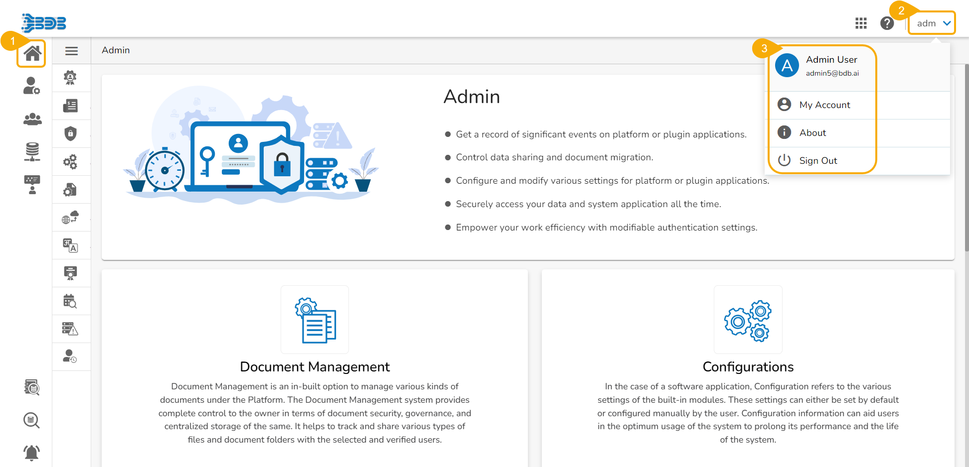 About: Displays a welcome page of the BDB Platform.