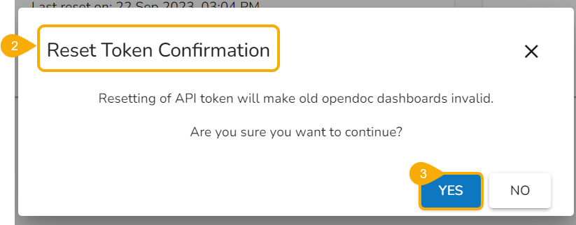 Click the YES option from the warning message window to reset the API Token.