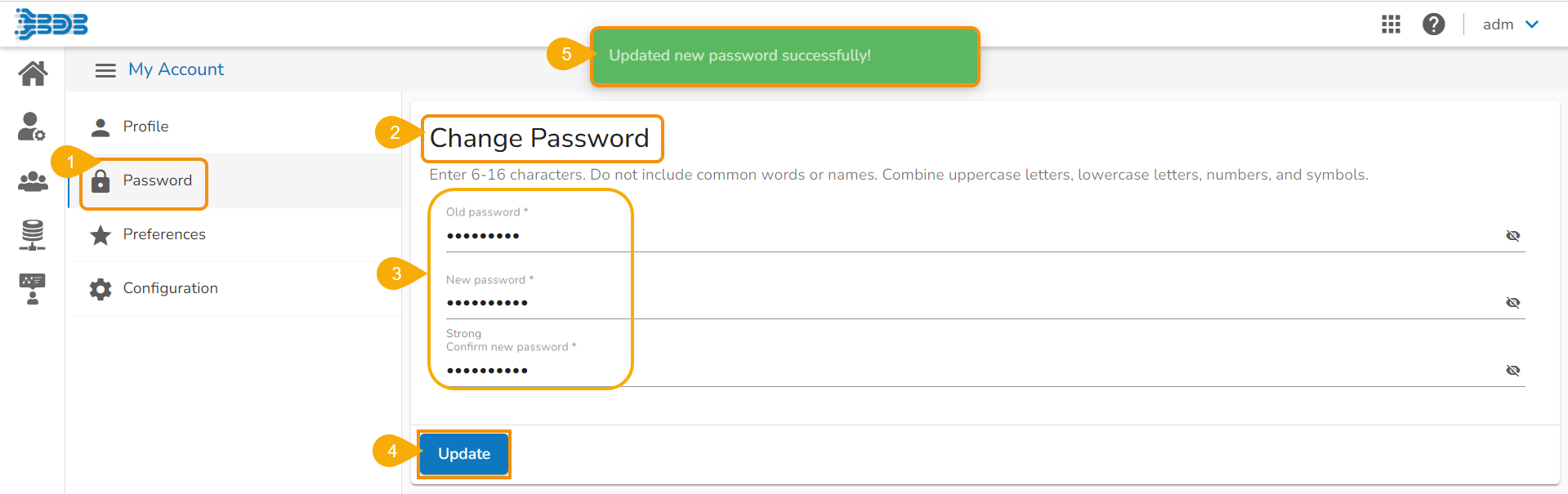 A confirmation message appears and the password gets changed for the concerned User Account.