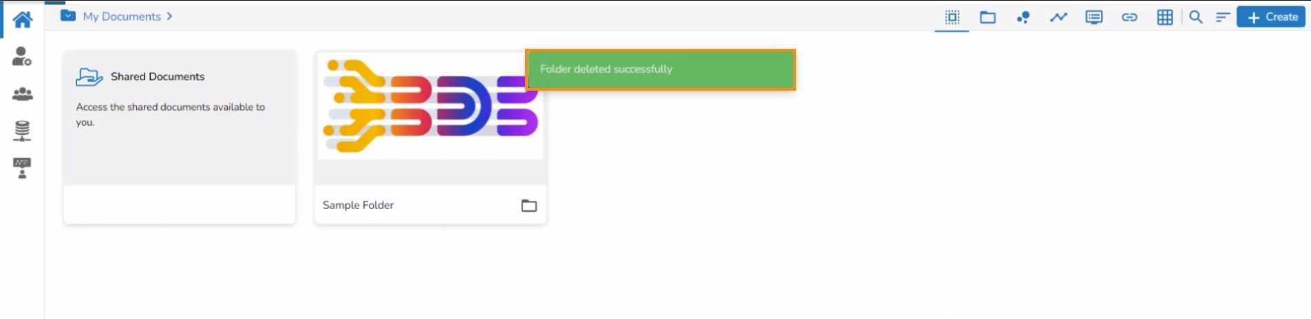 The following confirmation message appears if the deleted folder is the only document available under the My Documents space.