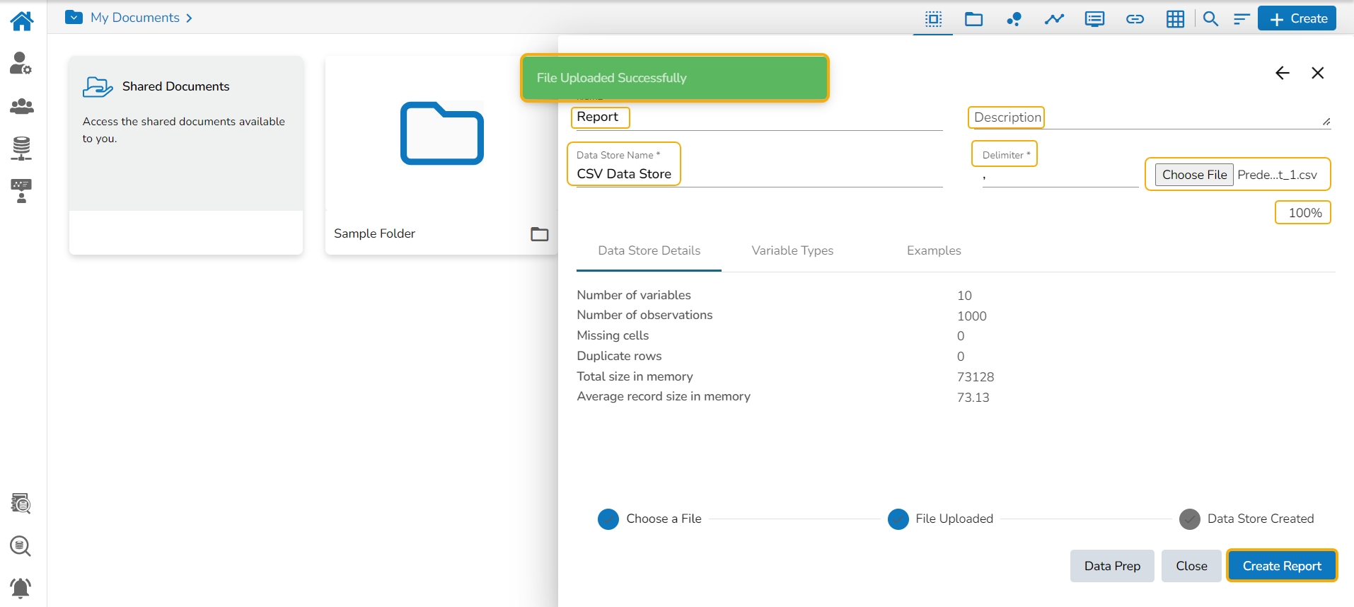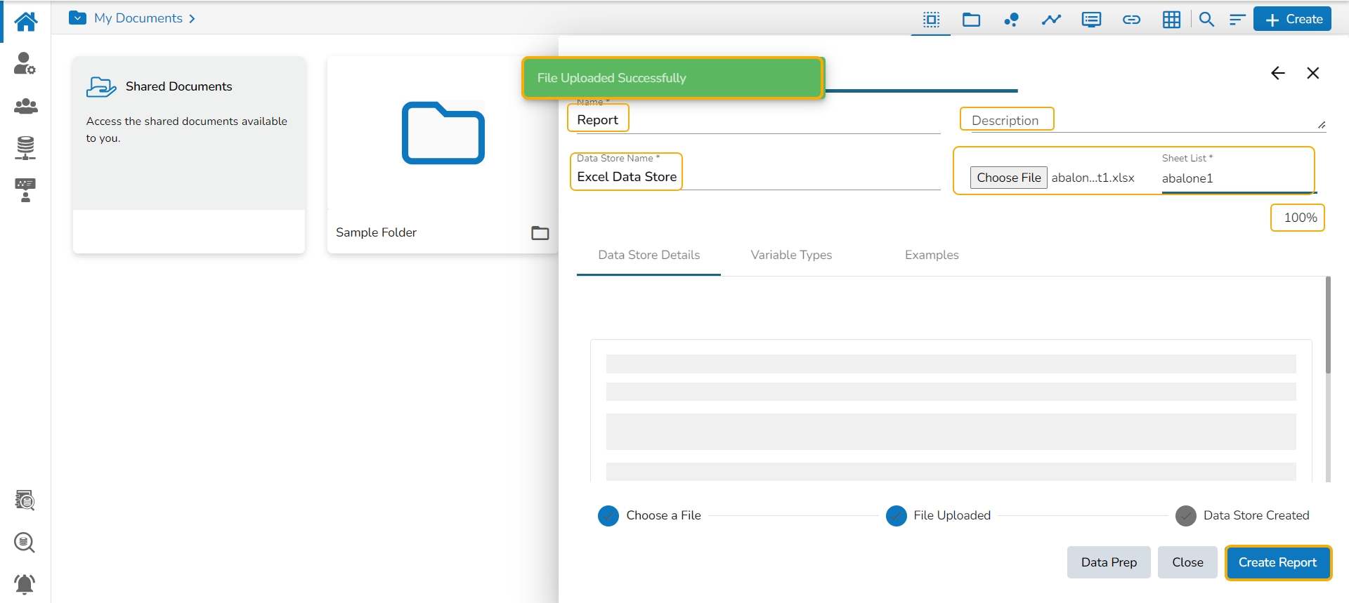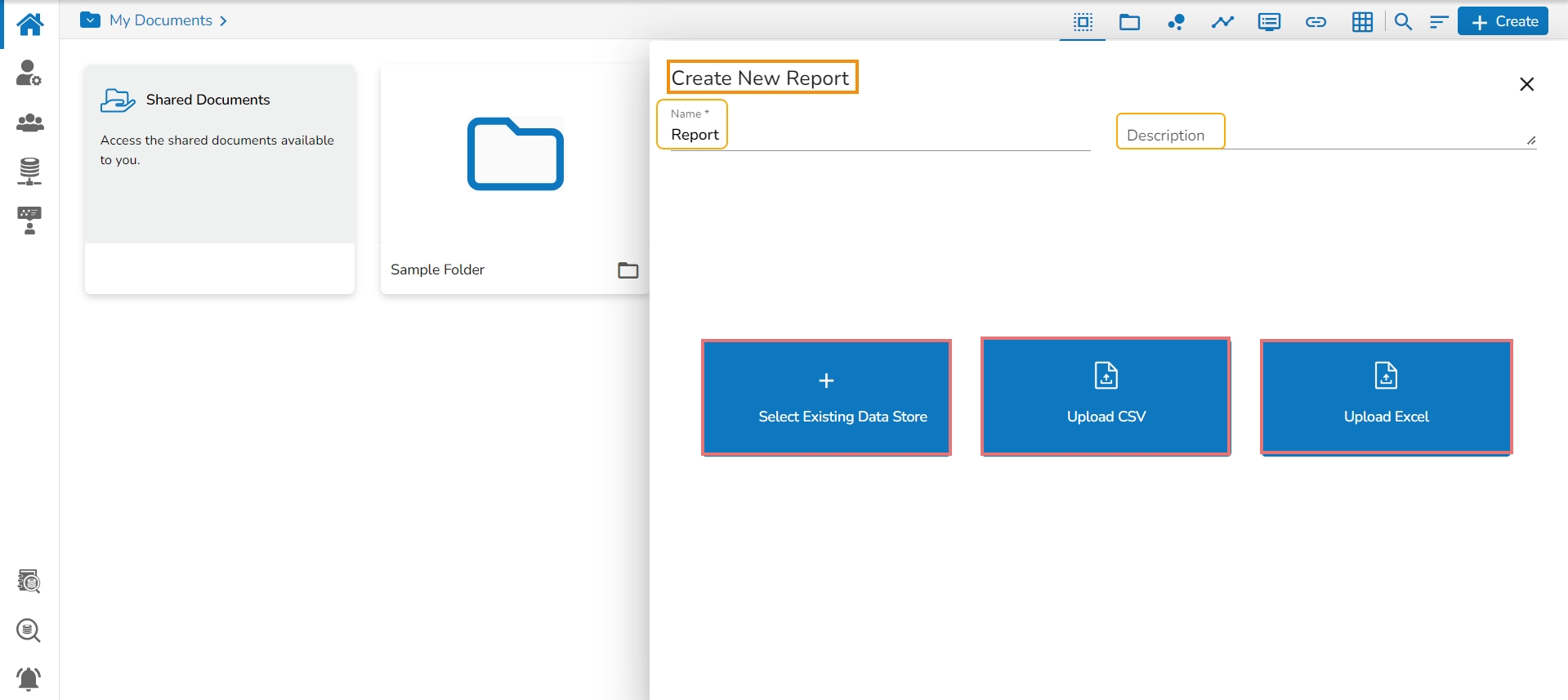 Create New Report page after uploading a CSV file The next screen when an Excel file is uploaded to create Report is given-below.