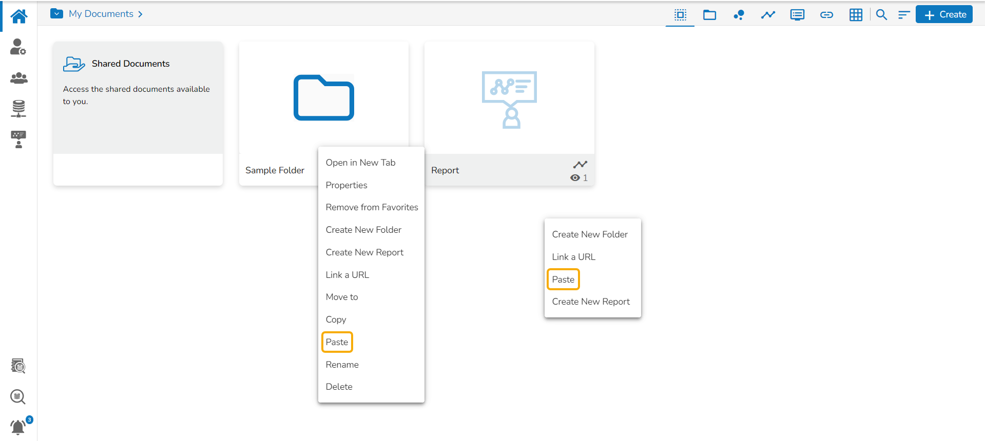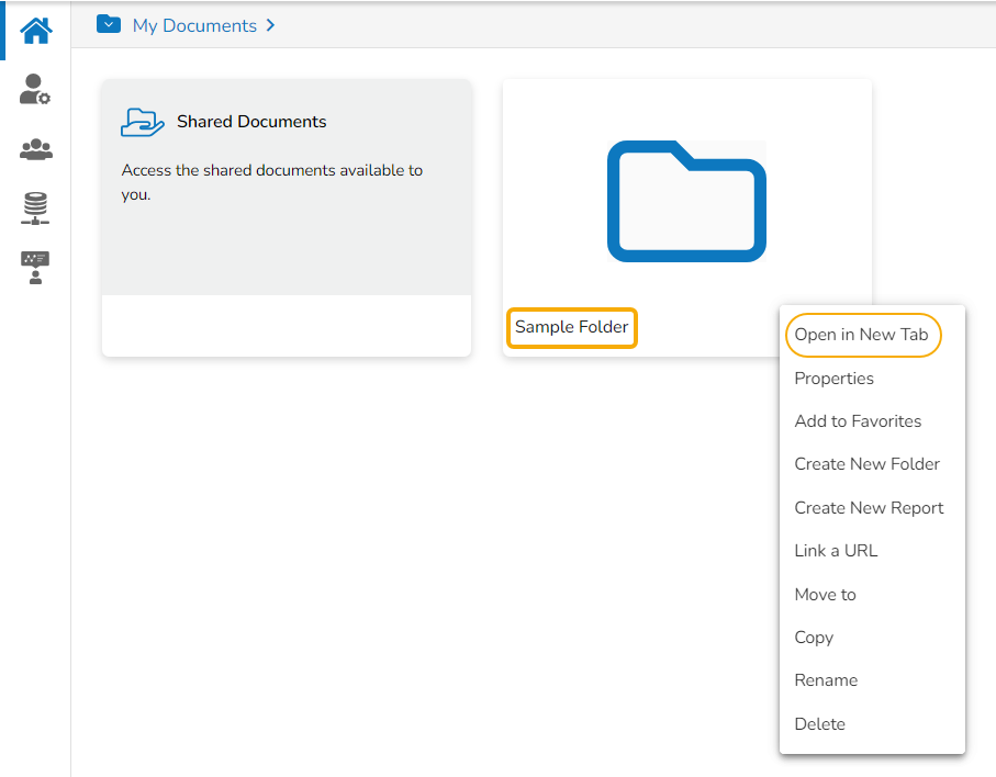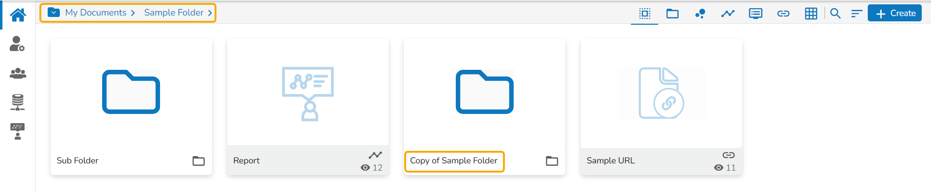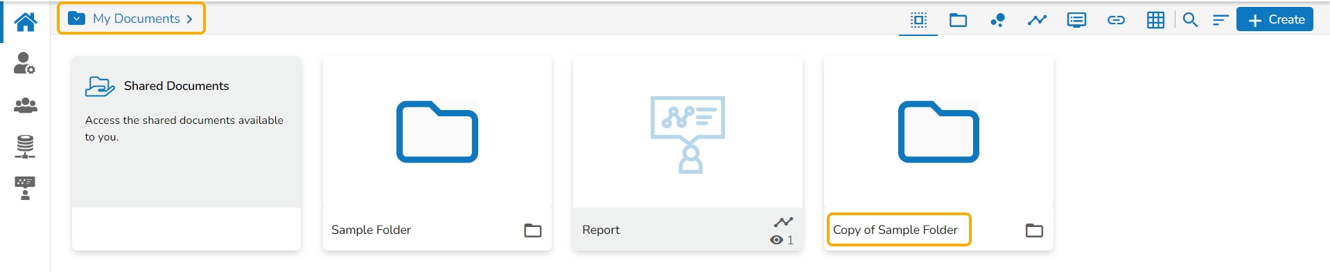 E.g., The following image shows that a folder Sample Folder from My Documents is named Copy of Sample Folder and has been pasted under the My Documents on the Platform Homepage.