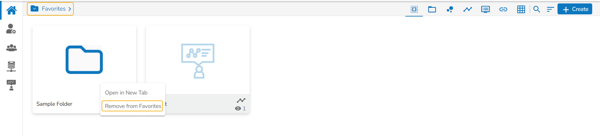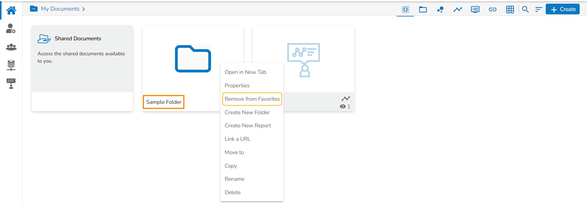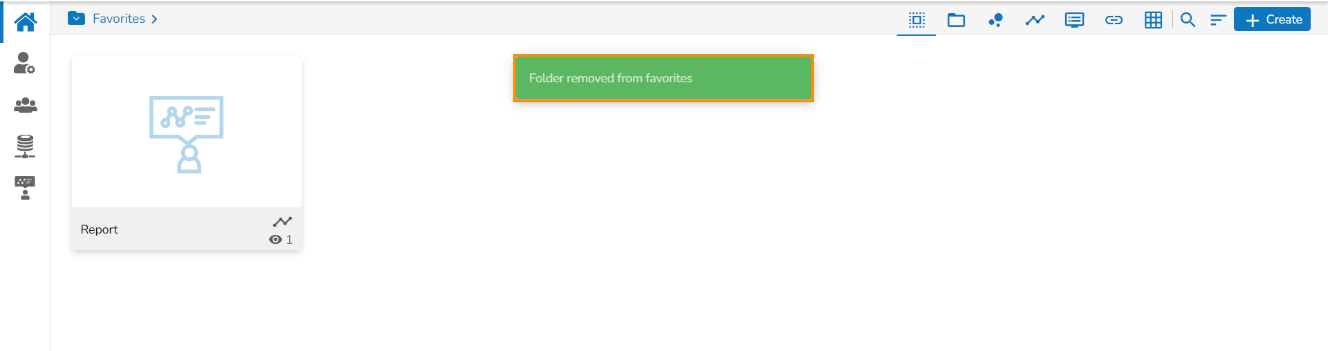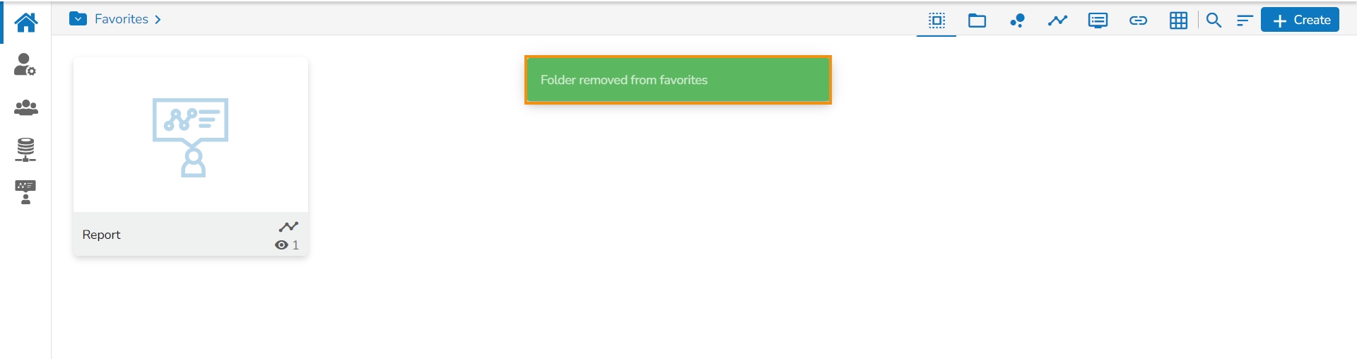 A message, “Folder removed from Favorites” appears on the screen, and the selected folder gets removed from the Favorites document space.