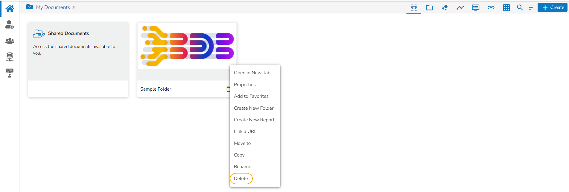 The Delete option is not available to the folders shared as the Public Documents.