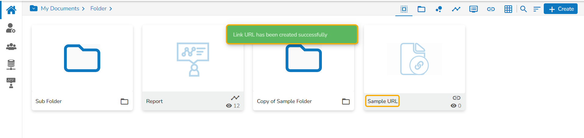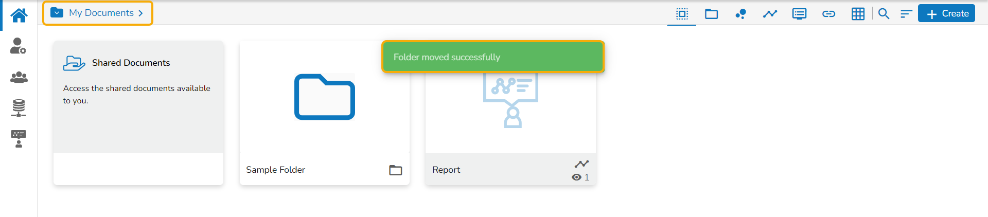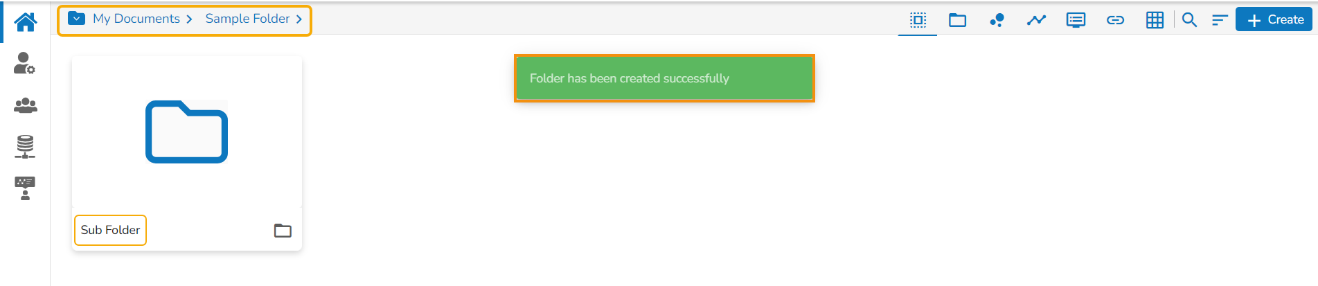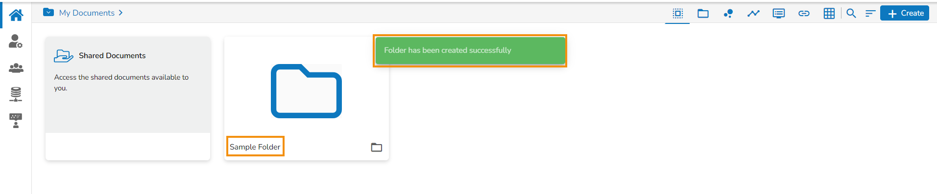 The newly created folder gets added to the selected document space.