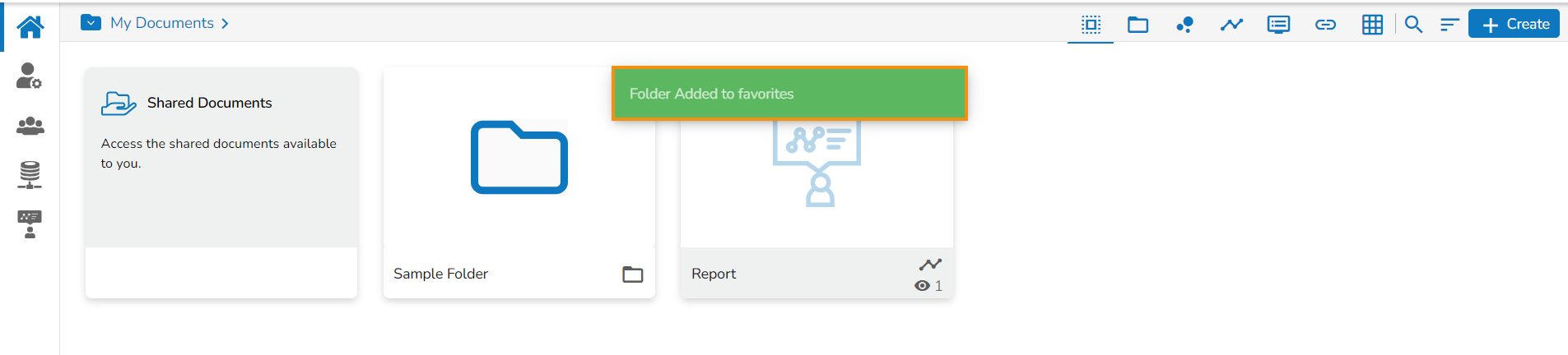 The selected folder gets added to the Favorites document space.