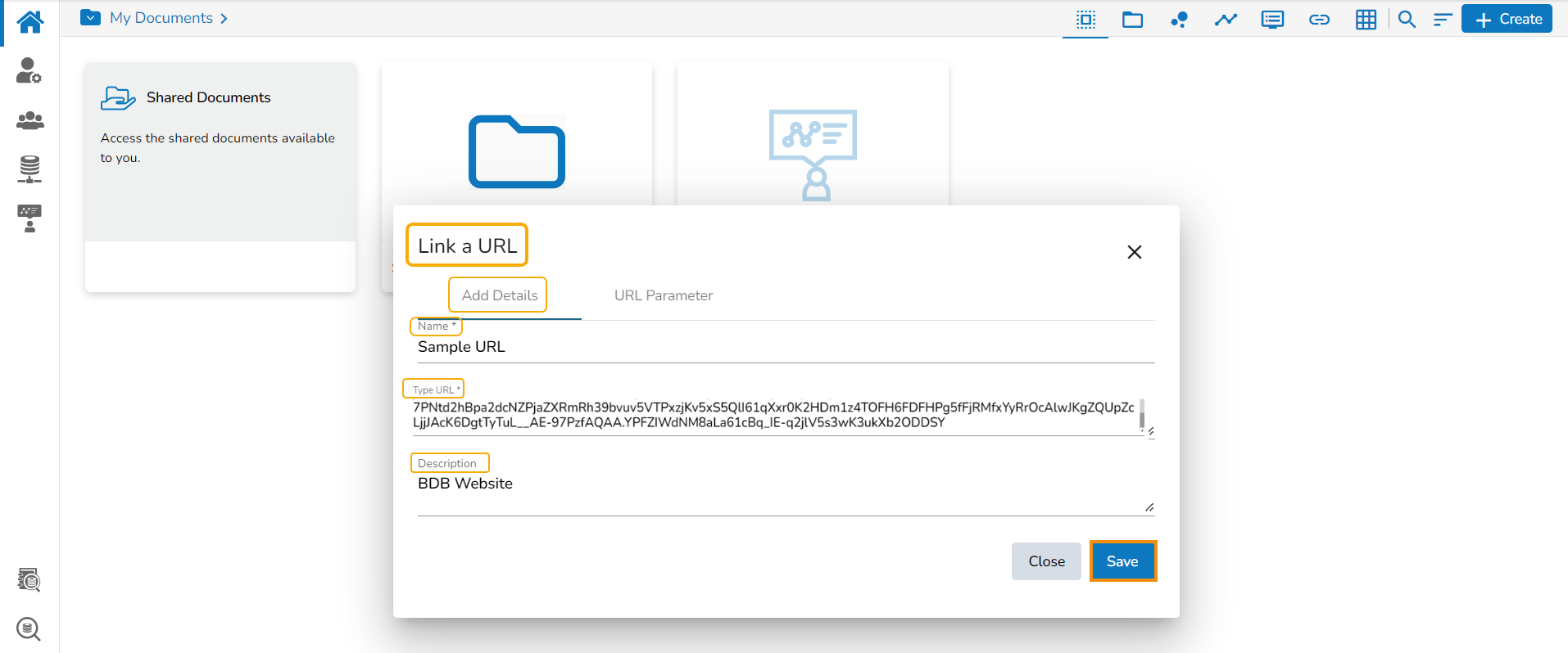 Provide the URL link that you wish to add in the Type URL field.