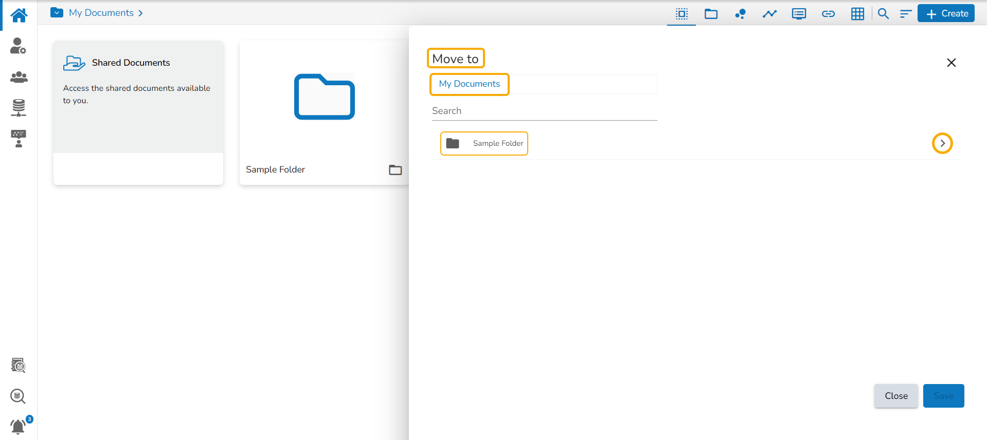 Please Note: The Move To option is not available to the folders shared as the Public Documents.