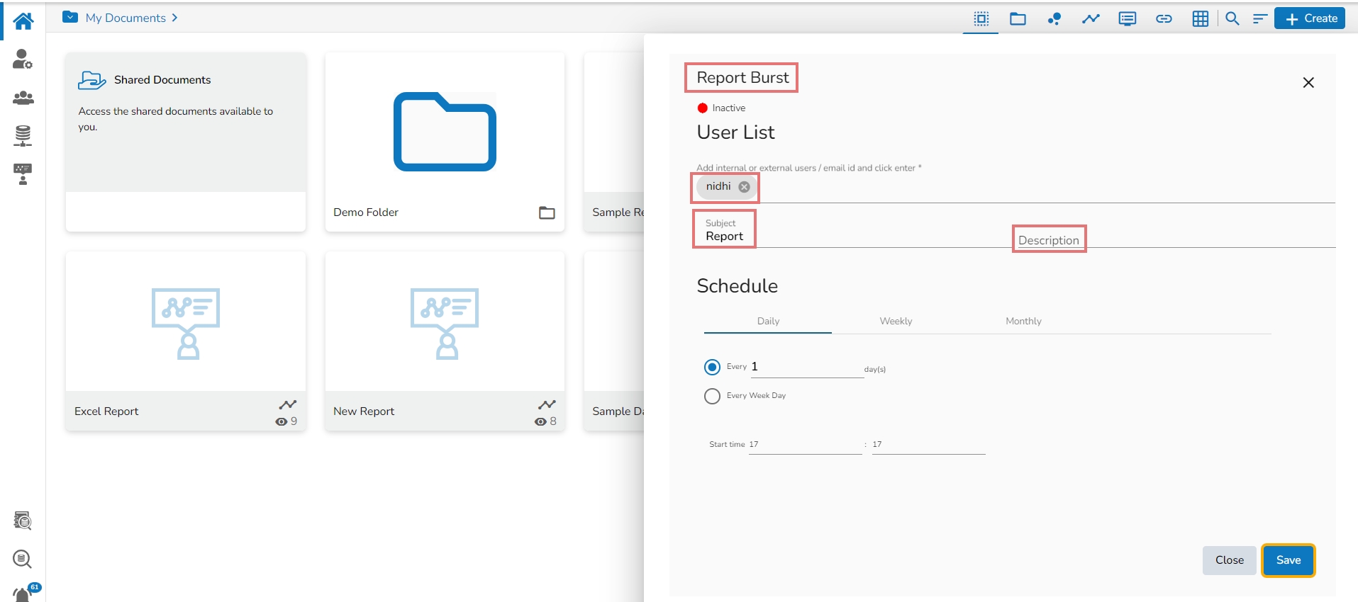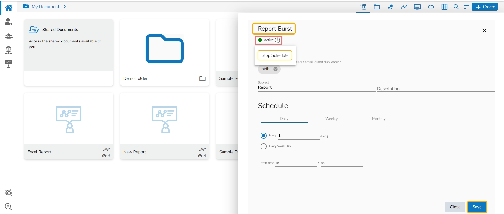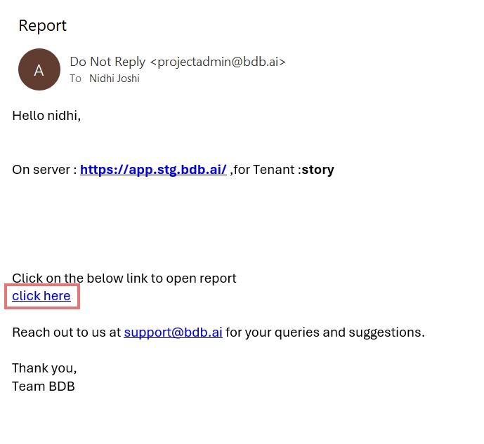 This feature helps to notify the selected users or user groups with the open link and PDF report of the selected dashboard.