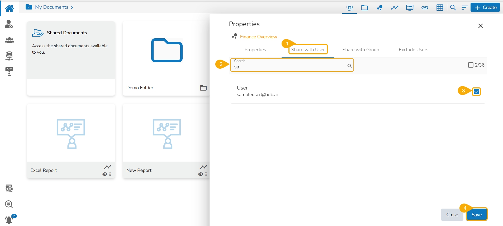 Share with User: The dashboard gets shared with the selected user(s).