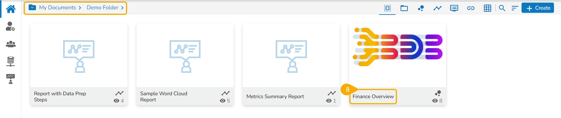 The user can access the published dashboard from the given location (My Documents is the default location for the published dashboards). E.g., the location for the following dashboard is My Documents.
