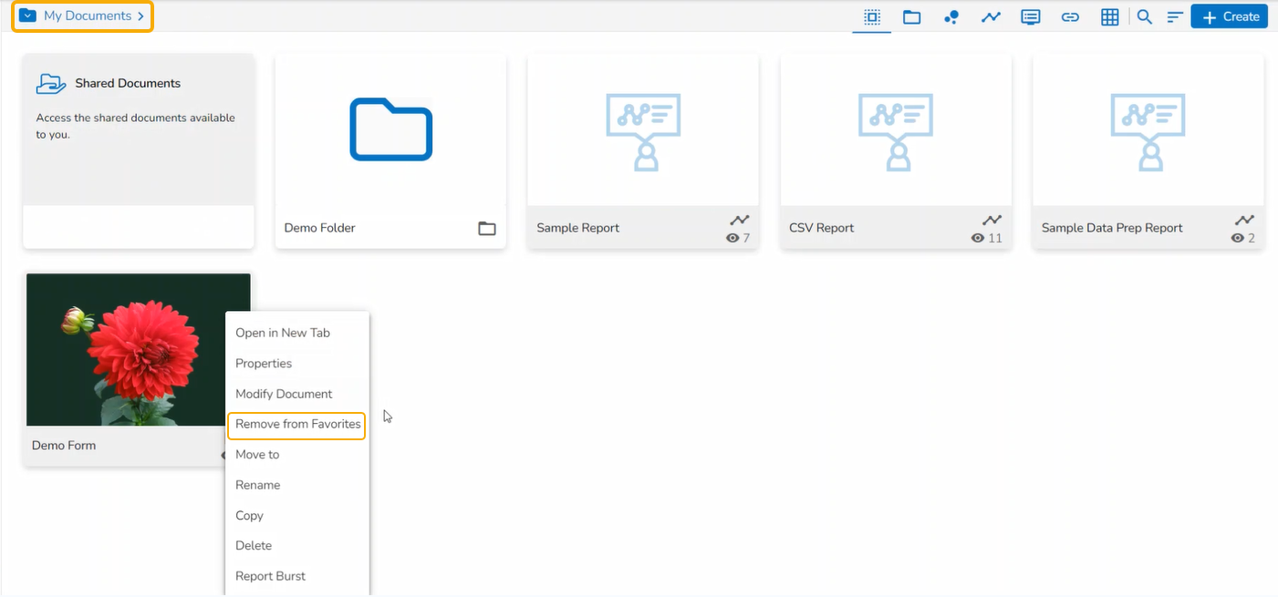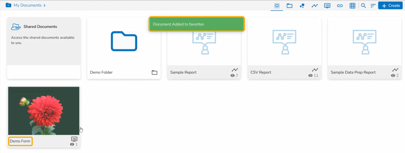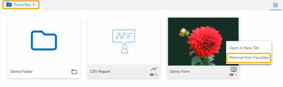 The Form gets removed from the Favorites, and a notification message appears stating the same.