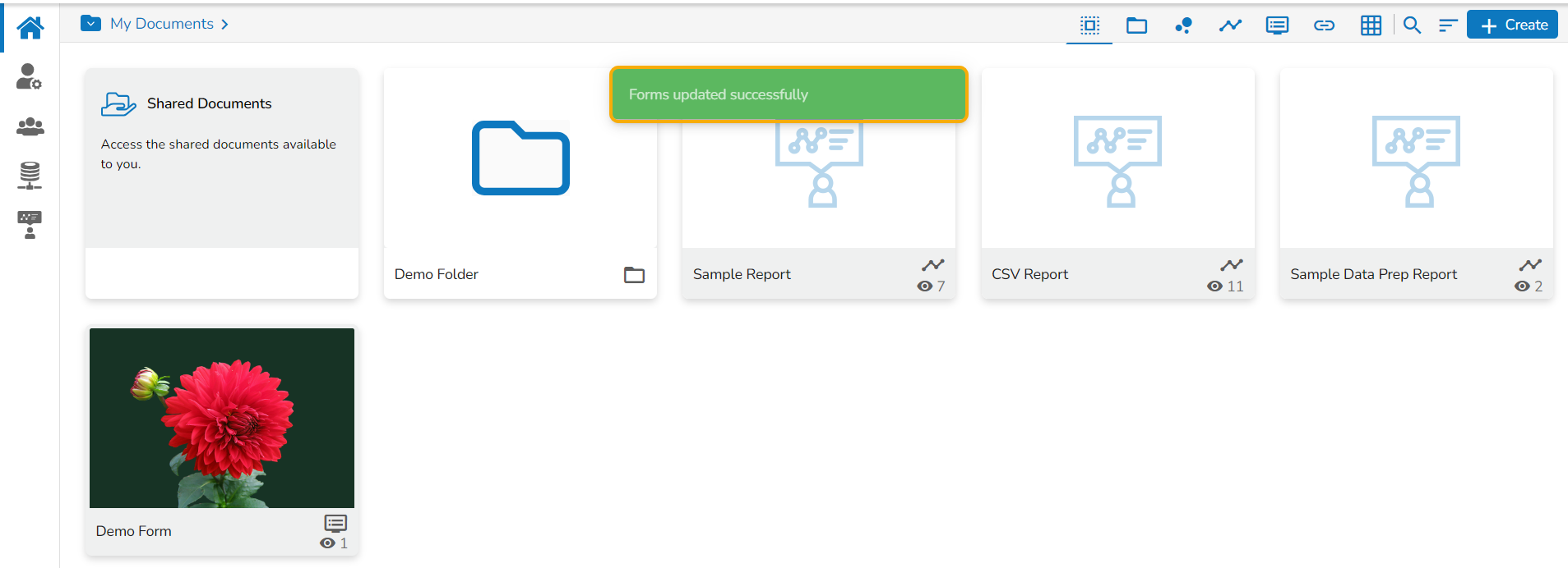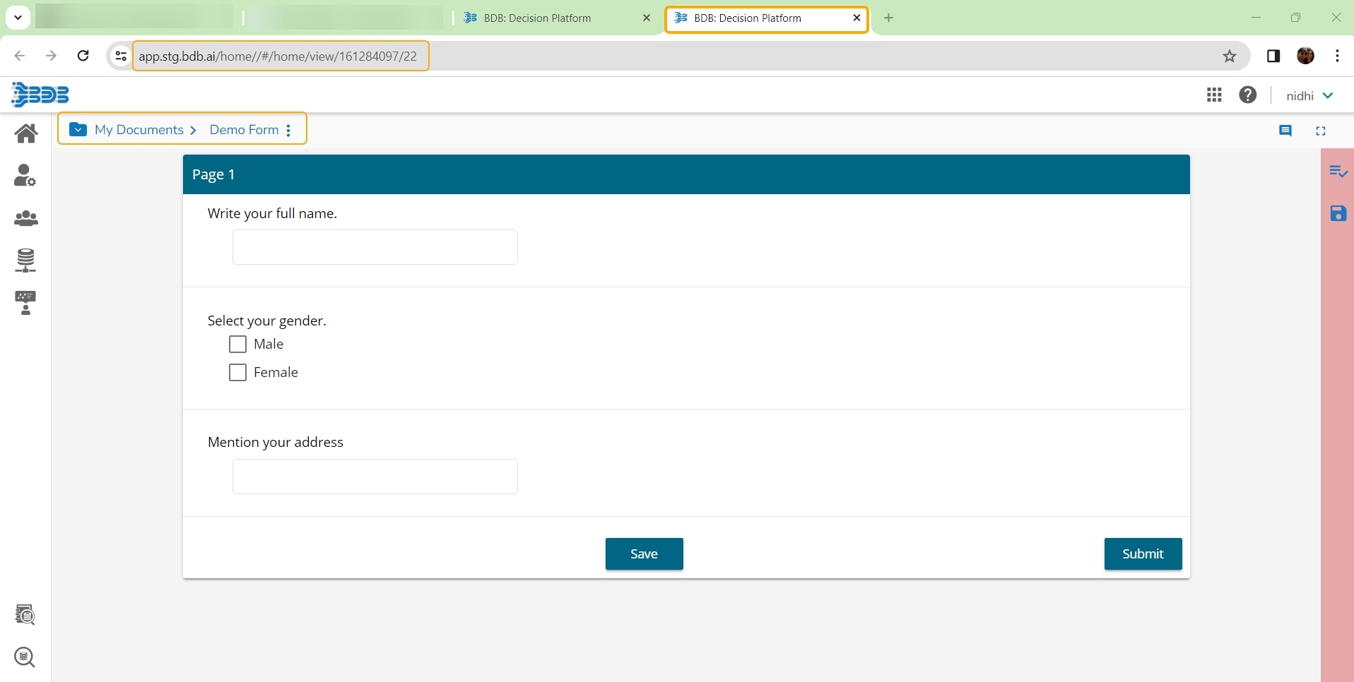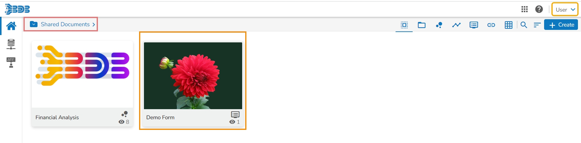 The users can publish the forms created by them to the BDB Platform. The published forms can be accessed on the BDB Platform homepage under the My Documents section.