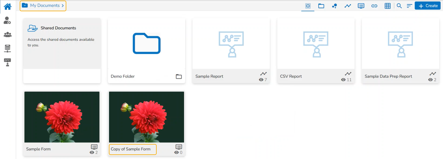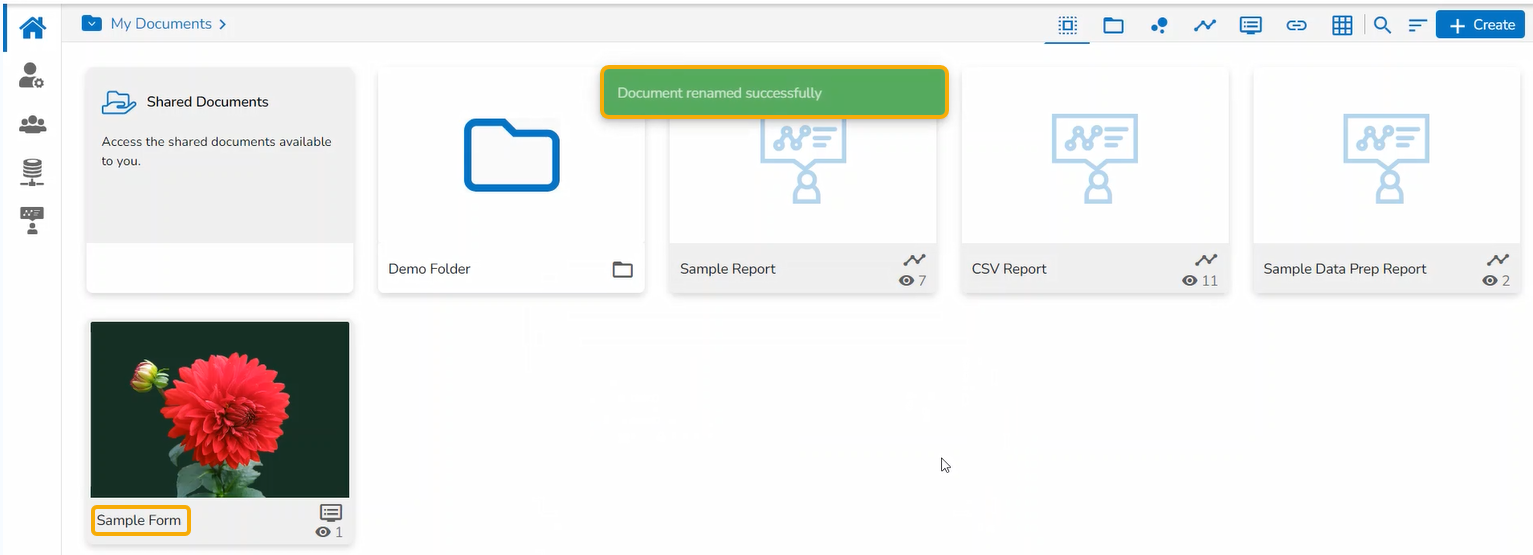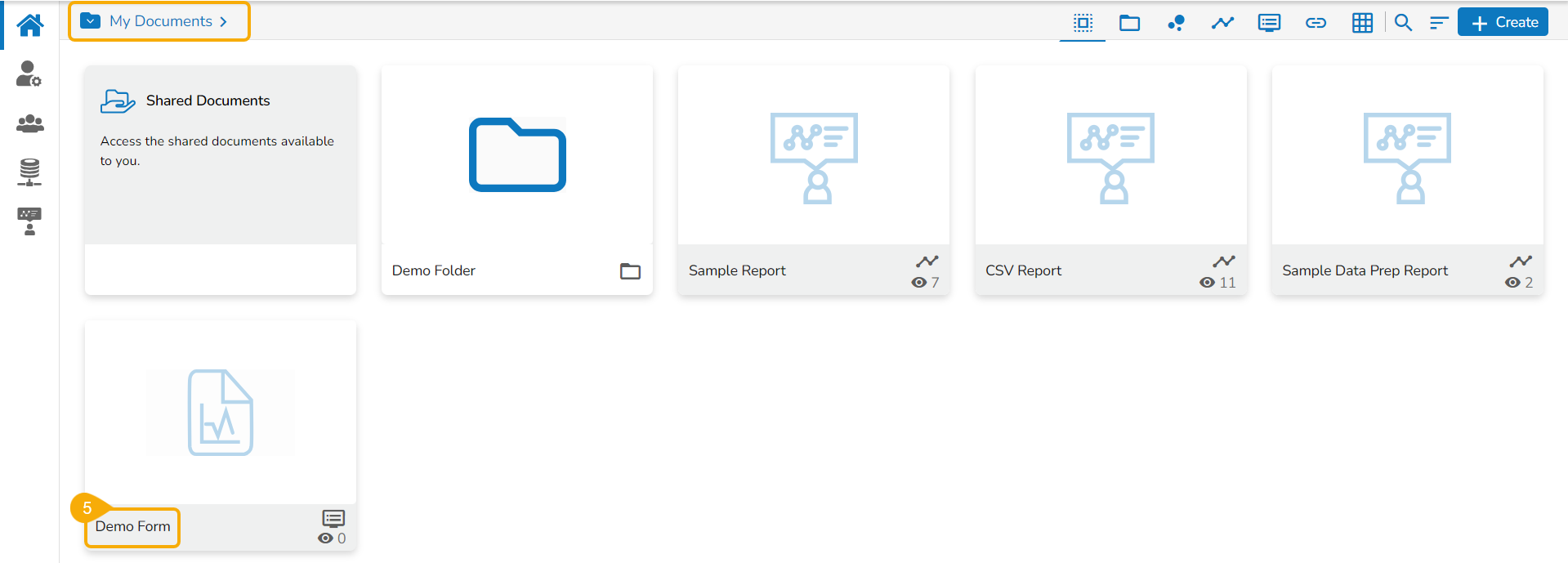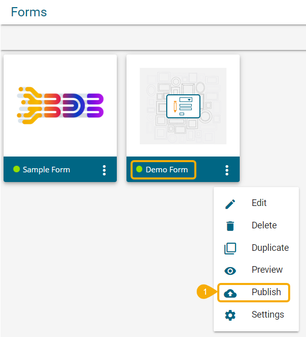 The users can publish the forms created by them to the BDB Platform. The published forms can be accessed on the BDB Platform homepage under the My Documents section.