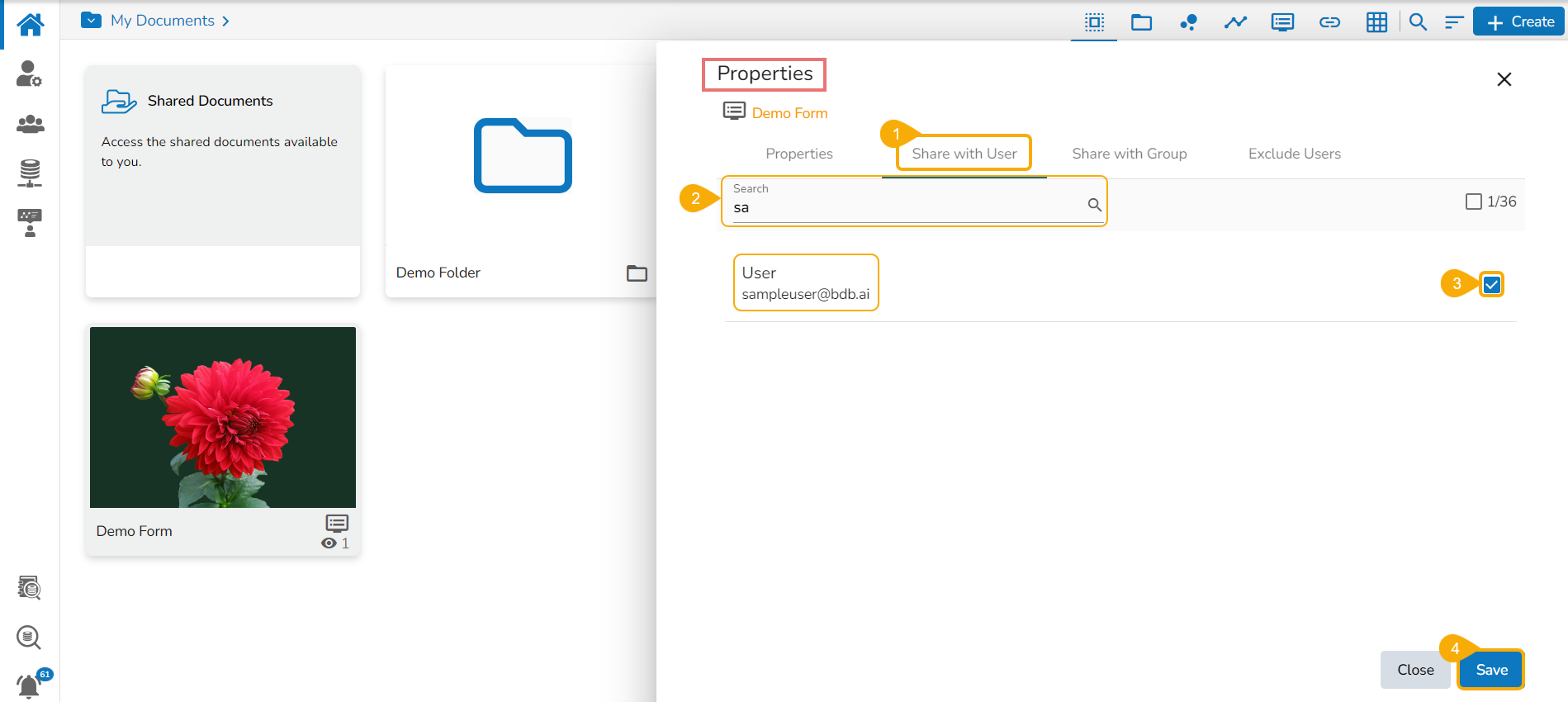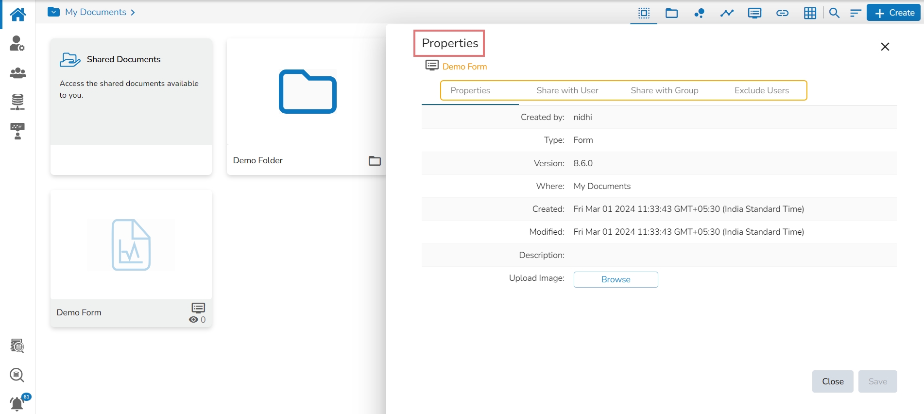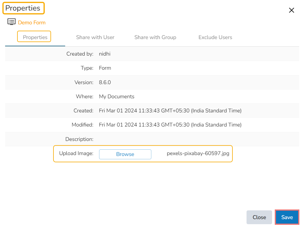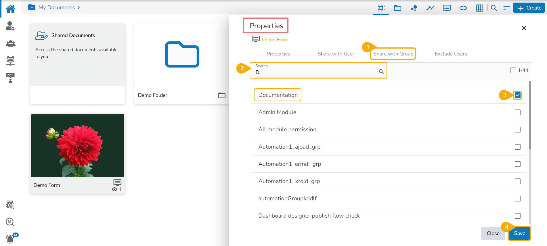 The Form gets shared with the selected User Group by selecting the Share with Group option.