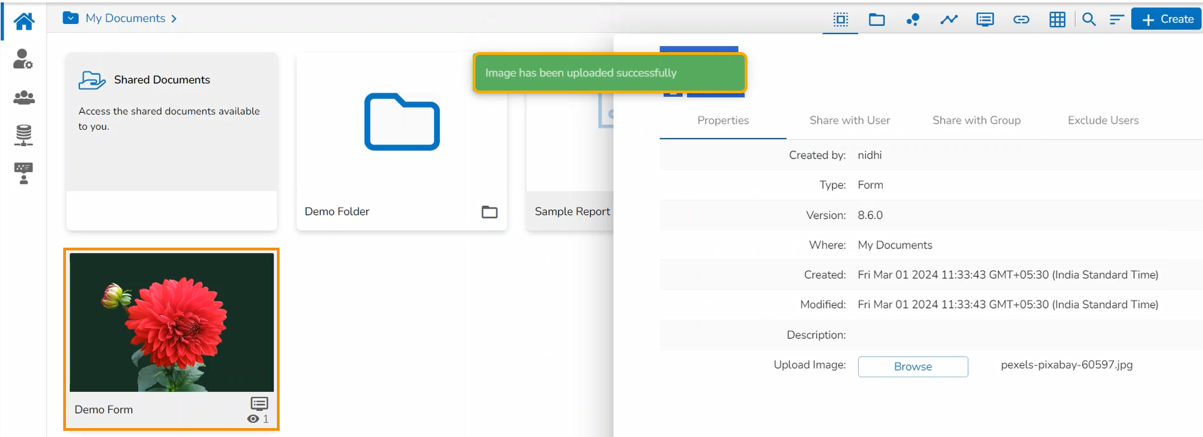 Please Note: A notification mail is sent to the users on their registered mail IDs to whom the concerned Form has been shared either using the Share with User option or the Share with Group option.