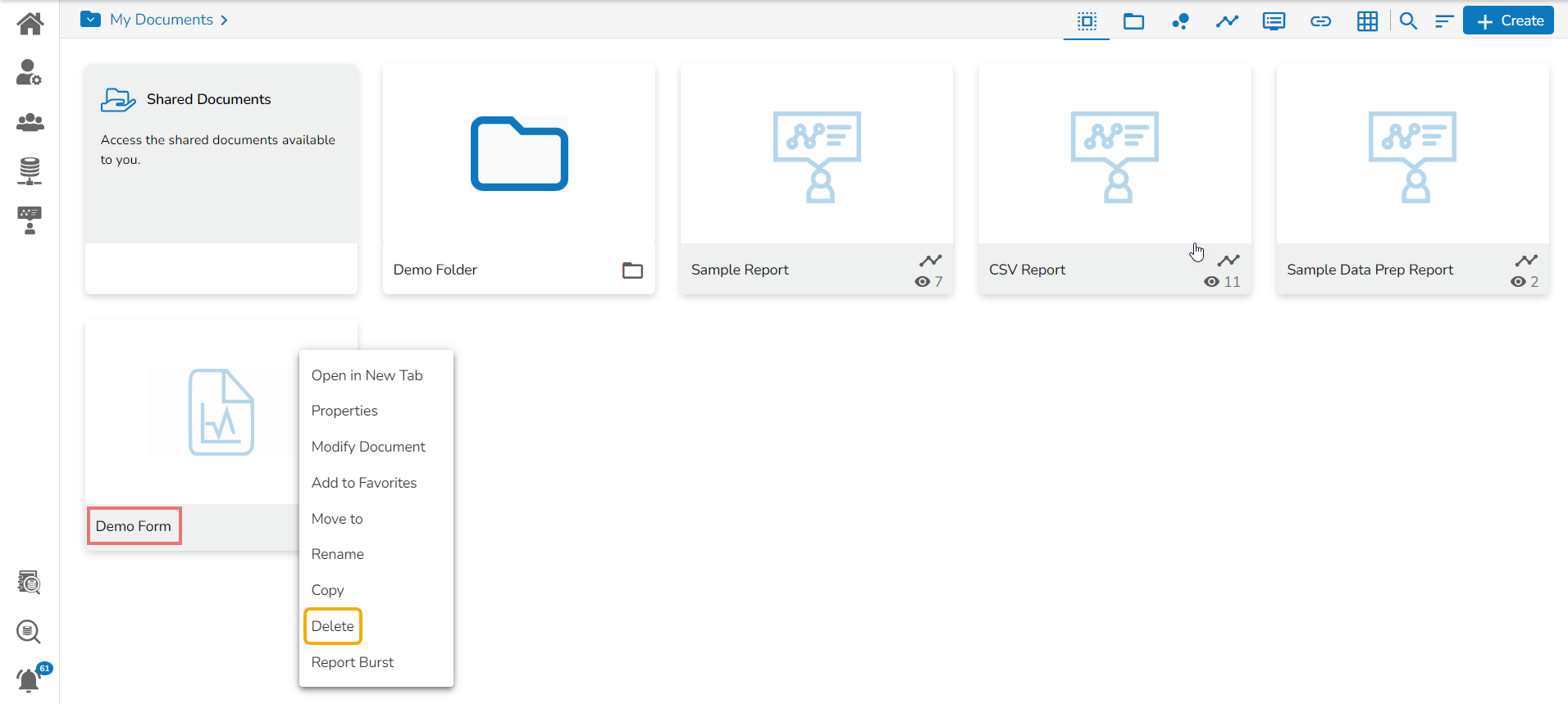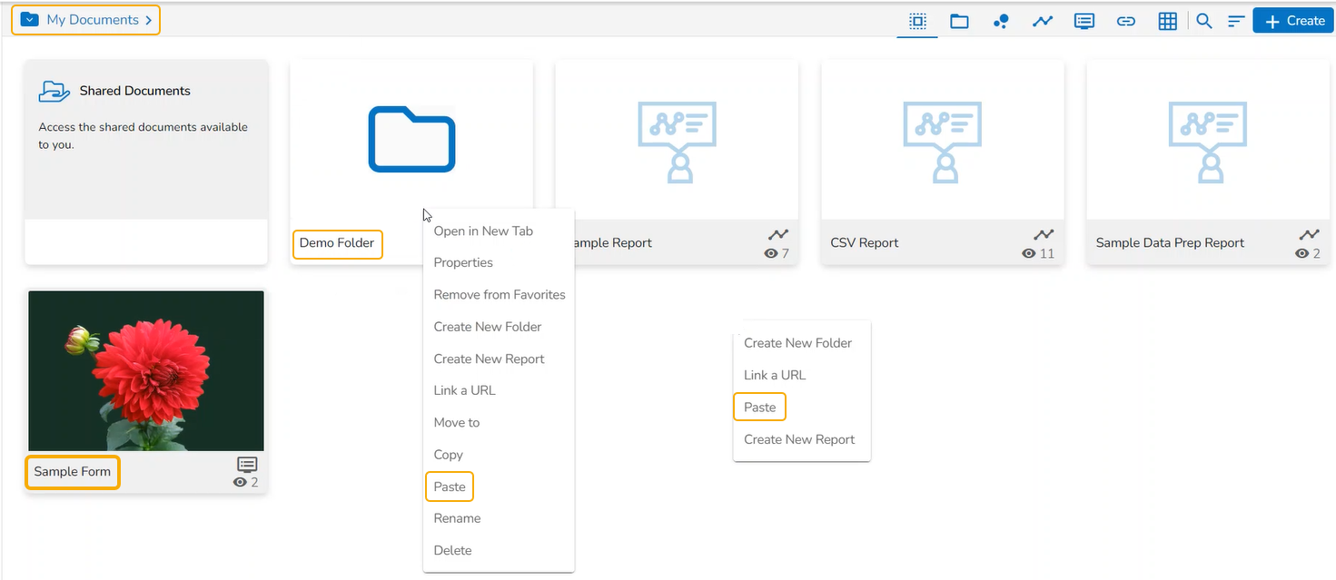 Each published Form is credited with some operations on the BDB Platform. The users can use right-click to access the available Form operations in a context menu.