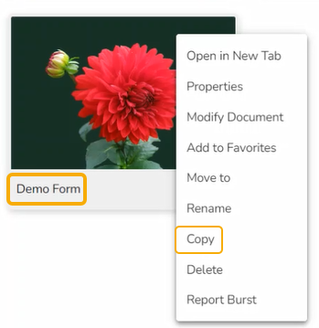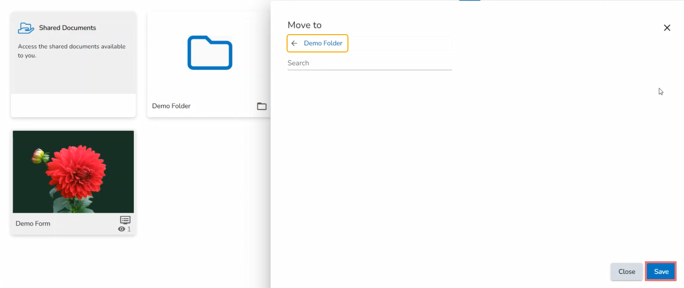 Administrators can move a Form from one folder or document space (E.g. My Documents) to another folder or document space.