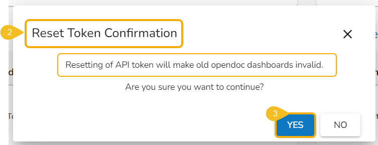 Click the YES option from the warning message window to reset the API Token.