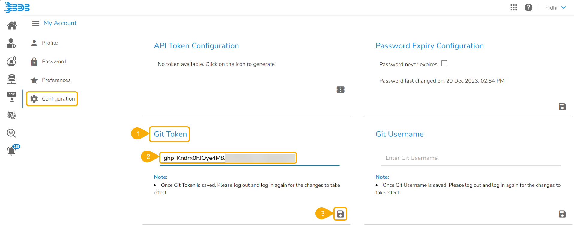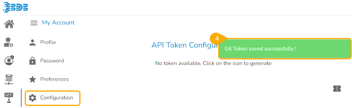 Navigate to the Git Token section under the Configuration tab.