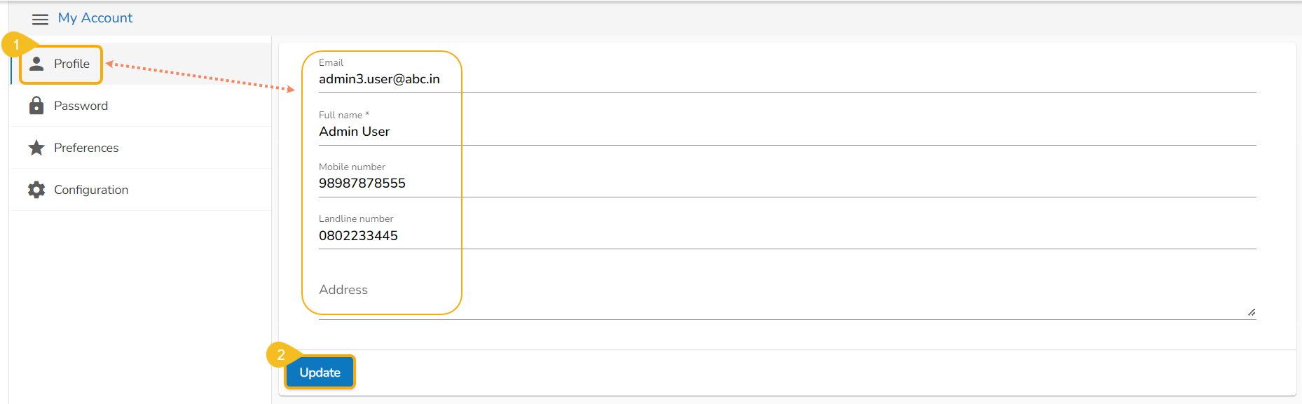 The user can modify/change the required details and click the Update option.