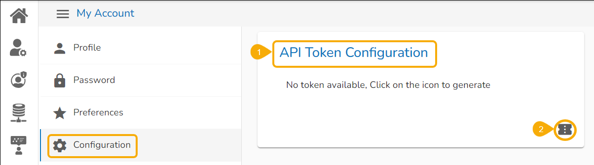 Navigate to the API Token Configuration option using the Configuration tab.