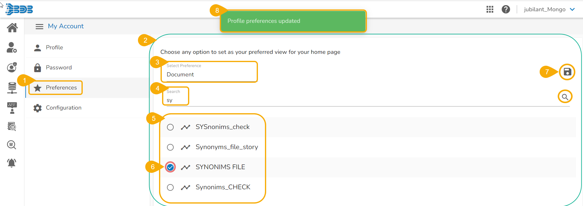 A pop-up confirmation message appears to ensure that the preferences have been updated.