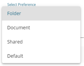 As per the selected choice, a drop-down menu appears (E.g., The following image displays all the available folders since the Folder option is selected from the Select Preference drop-down).